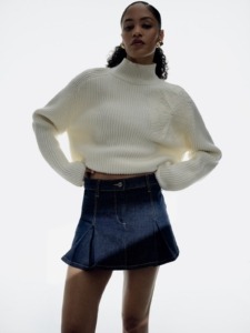 Autumn is synonymous with layering, and denim is ideal for such experiments. A denim mini skirt with pleats combines perfectly with bulky turtleneck sweaters. Add high boots and a long coat to that, and the result will be an outfit that is both trendy, striking, and functional. It’s a play on textures and lengths, where denim serves as the solid foundation around which the entire story is built.