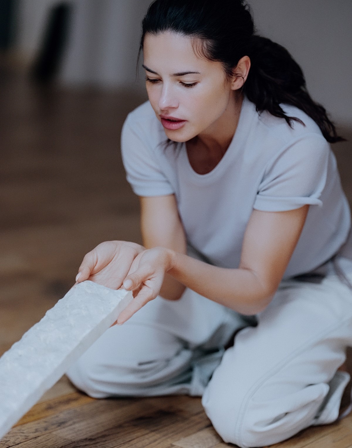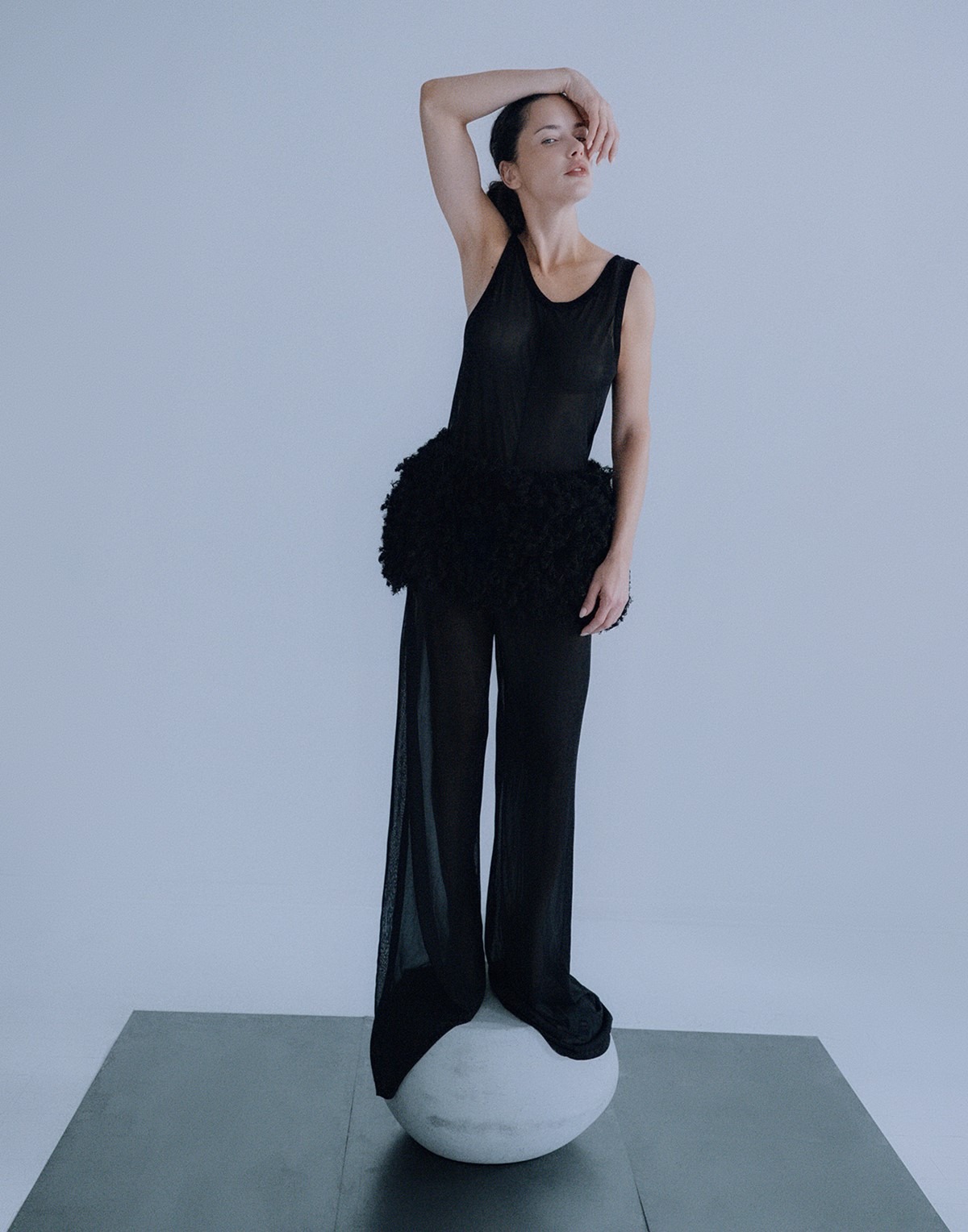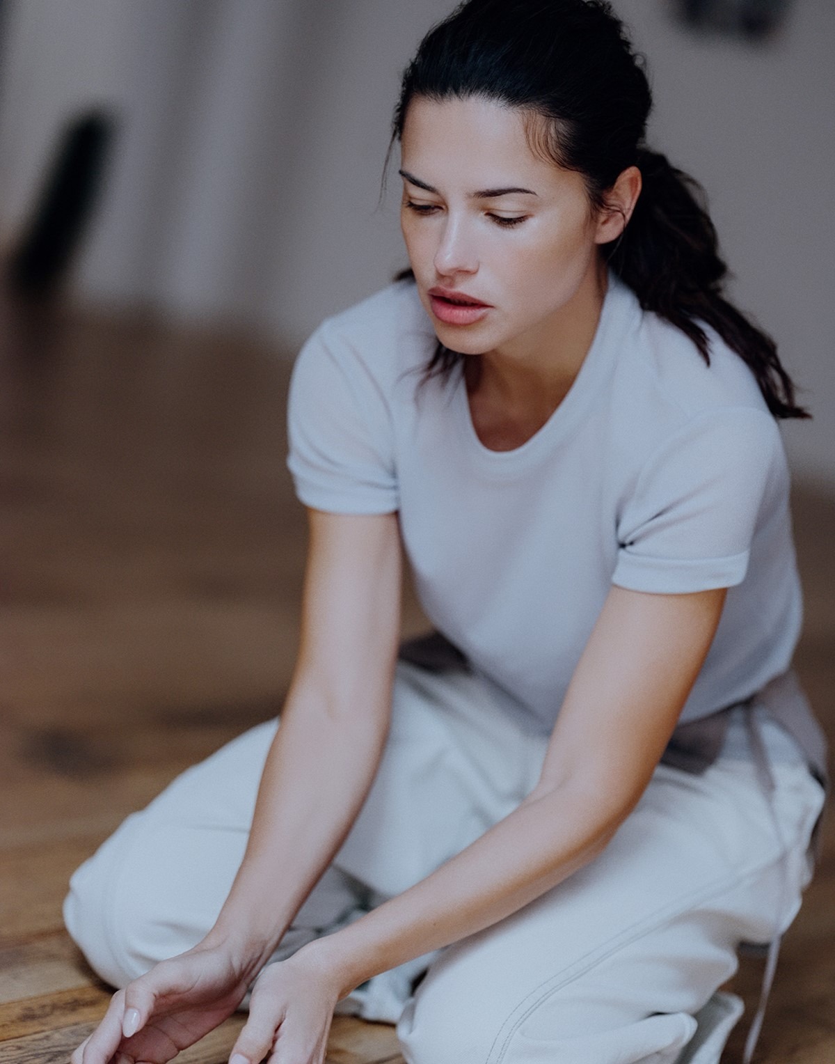 “Spending time with my family while also working on exciting projects that truly fulfill me is what gives my life meaning. Finding that harmony between work and home brings me a lot of joy,” Adriana tells me sincerely, adding, “Motherhood has been the most beautiful journey. Being a hands-on mother and spending time with my kids is my favorite thing in the world. It’s taught me patience above all, and to relax a little! I’ve always been such an organized person, and my children have taught me to let go sometimes and embrace the chaos.” Her satisfaction is evident in everything she does, as is the remarkable fusion of her professionalism and the ease with which she follows her instincts. We designed the shoot around the concept of a female artistic performance, presence, and spirituality, and Adriana immersed herself in it almost ritually. In a time when technology threatens to flatten the diversity of our ideas, seeking to unify our thoughts, art and creativity become the last sanctuary of humanity. Beauty lies in our unpredictability, and the seed of liberation in embracing the imperfections we’ve long tried to escape. Watching Adriana “pose,” surrendering to the free movements of her body and trusting her instincts enough to know they will lead her to a place of joy, feels like a performance. Shooting with her is far more than just a photoshoot; it is a process in which she herself becomes art.