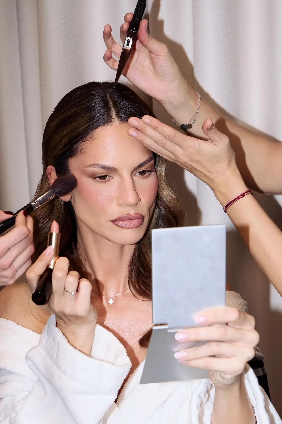 And while the finishing touches are added, like Aura Classic lipstick in a timeless nude shade and Radiant Blush for a natural, fresh look, I ask her what she would say to herself ten years ago.