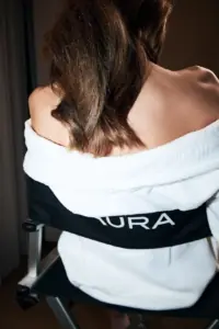 The AURA team perfectly highlighted her natural elegance and the needs of a red carpet look, preserving her authenticity and bringing out her star quality.