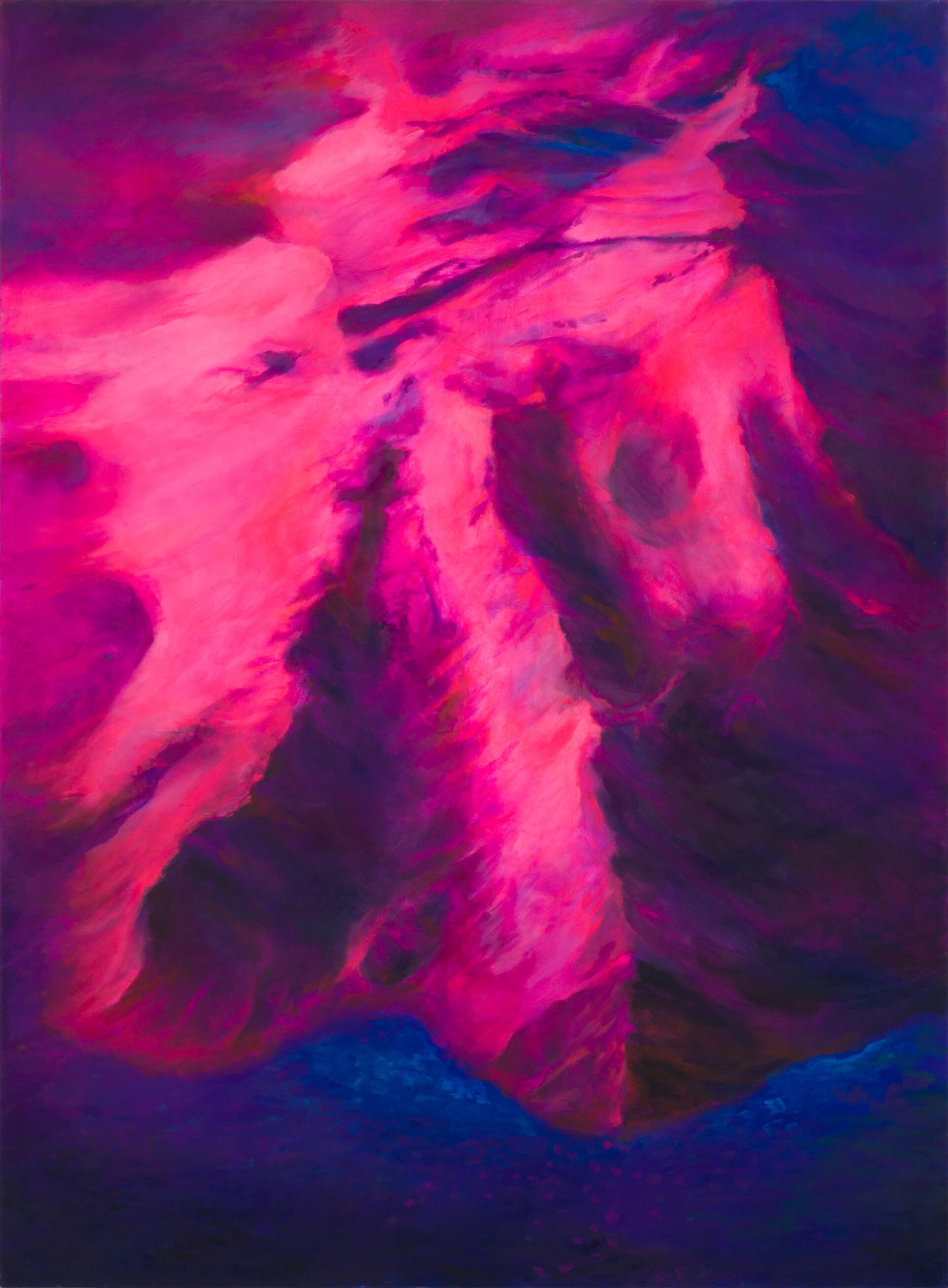 In works that oscillate between intimacy and surrealism, two types of composition clearly emerge: 1) a scene viewed from a high vantage point with frequent use of inverse perspective (through the physical representation of the world, we infer its psychological significance for the artist), and 2) a “floating” scene set in an imaginary, empty space (through psychological representation, we decipher a real “event”). In both cases, the viewer feels somewhat like a voyeur, physically “outside” the image yet drawn deeply into the artist’s intimate thoughts and emotional states.
