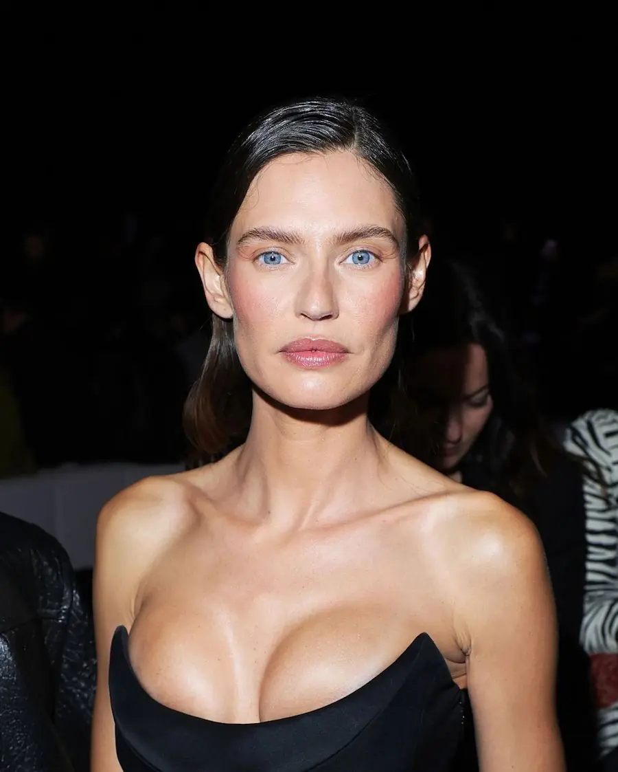 While her cheeks glow, Bianca opts for a matte rose-toned liquid pigment on her eyes, applied only with her fingertips. “Your hands are the perfect tool,” she says with a smile, mimicking the flush of skin that’s been gently kissed by the sun. The same creamy pigment works beautifully on the lips, tying the whole look together in a seamless, sun-warmed harmony.