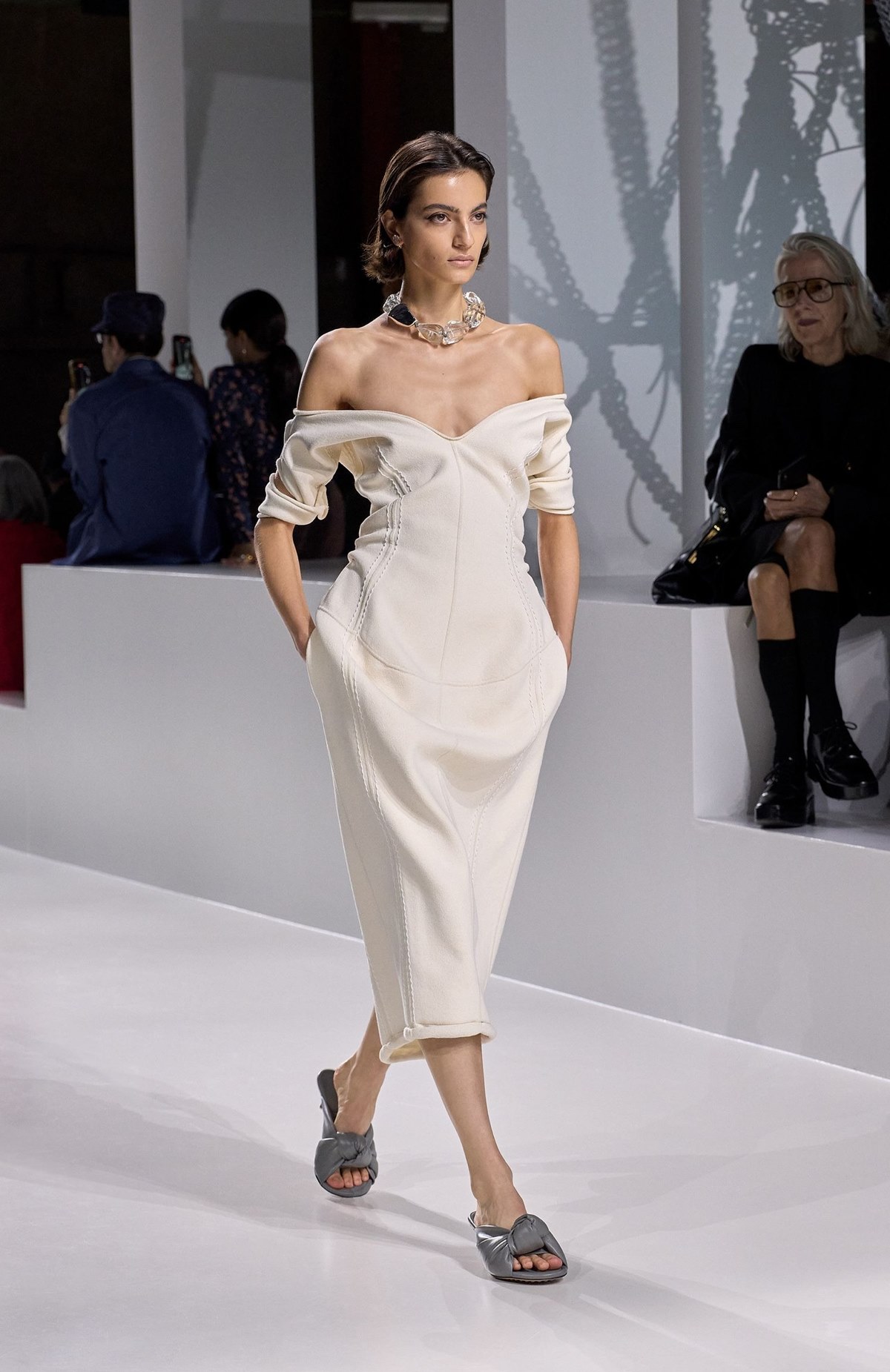 After cuts that emphasize the waist dominated trends for a long time, the 2026 runways decided to redefine the silhouette. The “waist” has been moved lower, to the hips or even the thighs, creating a form we are not used to seeing in dresses. JW Anderson, Balenciaga, and Simone Rocha are just some of the major fashion names that chose to steer the look of the dress in a completely different direction.