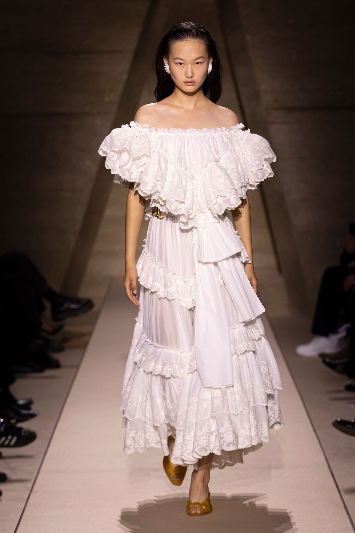 Lavish ruffles will once again rule trends in the coming spring, readily taking us back to romance and dreamy dresses that bounce as you walk. Giambattista Valli offered his version in a soft pink shade made from a transparent material, Chloé sent a boho off-the-shoulder model down the runway, while McQueen presented an interesting asymmetrical model in white.