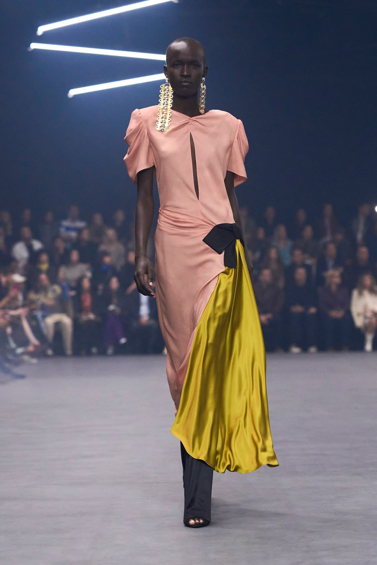 Dresses with asymmetrical cuts dominated the spring 2026 runways. Fashion house Chloé presented a series of dresses with floral patterns that play intriguingly with length, Loewe offered its version of the black dress enriched with bold colors, and Valentino embraced a similar approach.