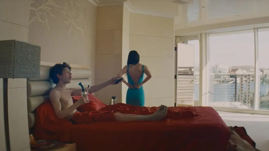 Madison caused controversy when she said in an interview that she refused to shoot with an intimacy coordinator. She described their scenes more as sex shots than real sex, and that is shown faithfully on screen. The act lasts about ten seconds. Ivan climaxes prematurely, and Ani tries not to laugh. She is far more experienced, but that cannot compensate for the fact that Ivan’s wealth is the reason she is entirely dependent on him. At first she is not aware of this, but when reality becomes clear in the second half of the film and Ivan flees at the first sign of a threat from his parents, she realizes how little control she has over him.