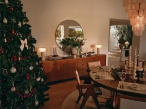 The holidays begin at your front door, Delia says, offering a decorating tip. In the hallway I bring in fresh branches, fir, warm lighting and create a harmonious transition and a welcome that immediately gives the home a festive character. I decorated my entrance the same way. I added a small tree, a rattan wreath inspired by hers and fresh fir branches that spread that unmistakable December scent. For the first time, my apartment smells like the holidays and not just perfume and coffee. The feeling when you step into a space that instantly calms you is a kind of luxury you cannot buy.