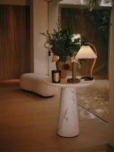 I must admit, I never thought of marble as a “holiday” material. But Delia convinced me otherwise. Marble gives decor a calm, luxurious character. A small bowl filled with ornaments, fruit or walnuts is one of my favourite quick December decorations, she explains. I bought a small marble bowl and filled it with ornaments in burgundy tones. It became the detail that makes everyone who walks into my apartment say, This looks lovely. Marble is strong and perhaps that is why it evokes a sense of ultimate luxury. It is a material that carries the history of entire civilizations. When it comes to holiday decoration, I realised that it speaks of permanence and continuity, and with it you simply cannot go overboard.