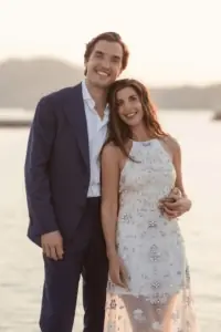 Na dan prosidbe, Mattias je obitelji otkrio svoj plan: zaprosit će je kod crkve Agios Sostis, koja se nalazi iznad plaže i restorana koji obitelj Valhouli obožava. “Nakon što smo se upisali na listu čekanja u Kiki’su, Mattias je predložio da prije ručka odemo do crkve i uživamo u pogledu. Kad smo stigli, kleknuo je, ali prije nego što je uspio išta izgovoriti, odjednom se iz svih smjerova pojavila moja obitelj, a teta je pustila moju omiljenu pjesmu Nikosa Vertisa,” priča Buggy. “Bilo je to kao scena iz My Big Fat Greek Wedding.” Slavlje se nastavilo cijeli dan, a zatim i tijekom putovanja na otok Paros, gdje su uz večeru u svom omiljenom restoranu Siparos podijelili sretnu vijest s prijateljima i rodbinom.