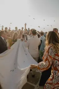 Nakon večere, slavlje se preselilo u amfiteatar, gdje je plesna zabava dosegla vrhunac. “Moj brat i naš prijatelj Billy, poznati kao braća Panzaria (‘panzari’ na grčkom znači cikla), poznati su po ludim glazbenim setovima koje izvode u toaletima klubova po Grčkoj,” kaže Buggy uz smijeh. “Na našem vjenčanju imali su svoj službeni glavni nastup s četiri pjesme koje su potpuno razveselile publiku.”