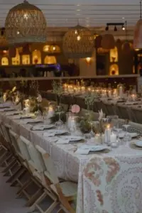 Nakon zdravice ispod maslina, svi su se preselili u Monastiri Beach Club, gdje je održan prijem. “Željeli smo da večer podsjeća na obiteljske večere koje je moja majka priređivala dok sam odrastala, jednostavne, srdačne i pune hrane,” kaže Buggy.
