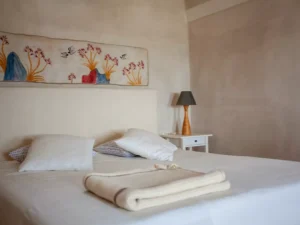 Za drukčije iskustvo boravka u dvorcu, razmislite o ovoj venecijanskoj kući iz 15. stoljeća smještenoj u utvrđenom selu Kasteli na Santoriniju. Na raspolaganju su dva apartmana, Loggia i Porta, koji zajedno mogu primiti najviše devet osoba. Bijelo okrečeni, špiljasti interijeri pružaju osjećaj ugodne izolacije, dok krovna terasa otvara pogled prema prekrasnom Sredozemnom moru.