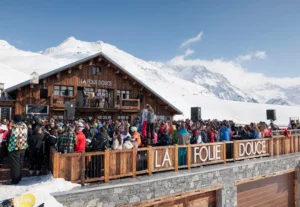 Après scena u Val d’Isereu ostaje dominantno britanska i poprilično divlja. Oko 16h cijeli resort pulsira kao jedan veliki party. Već oko 14h kacige vise po stolicama u originalnom La Folie Douce, na vrhu La Daille gondole (spust gondolom često spašava situaciju), gdje saksofon raspušta publiku, a kabaret plesači mame goste iz La Fruitière i La Cucucina. Iznad olimpijske gondole, grijane terase Cocorica nude spontaniju verziju showa: stolovi postaju pozornica za ples uz live bendove (od 16h), a povratak u dolinu često je više klizanje nego skijanje. Party se potom seli ka podnožju staza, uz vin chaud, Grand Marnier i Barillon de la Rosée Blanche. Oni kojima treba pauza često će neutralizirati višak šampanjca i panachea palačinkom ili chalet večerom, prije izlaska u institucije Val d’Iserea poput Bar des Tontons, La Bananas, ili elegantnijeg novijeg B’Bar Val d’Isère, jednog od nekoliko koji polira divlju reputaciju après-a ovdje.