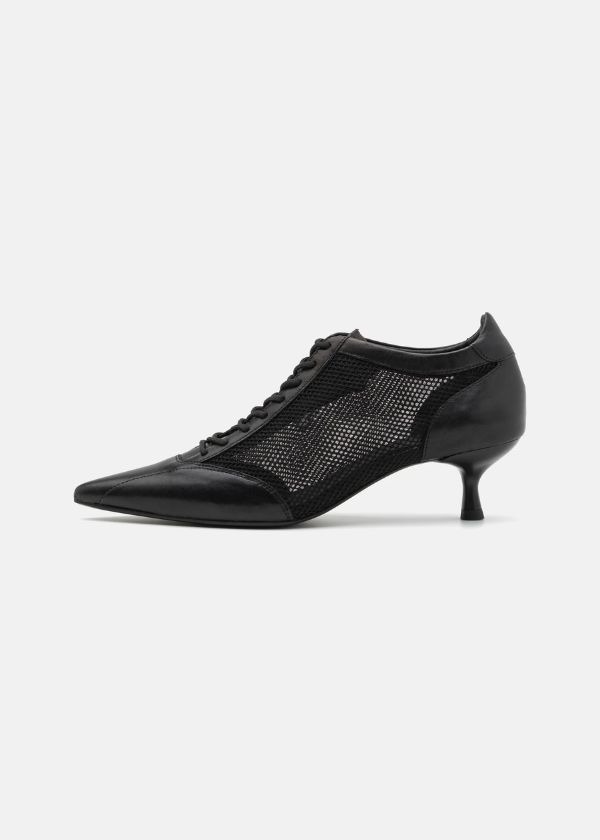 Riječ je o cipeli s potpeticom, nižom ili višom, koja se oblikuje ispod gležnja i zatvara vezicama. U nekim slučajevima, poput onih koje je prikazao Thom Browne, radi se o svojevrsnoj nadogradnji klasičnog Oxford modela kojem je dodana tanka stiletto potpetica (u njegovoj verziji i poneki svjetlucavi detalj). Jil Sander je jedan od brendova koji je najviše inzistirao na ovoj bakinoj cipeli, no ovog puta s oštrim vrhom. Boje poput električno plave ili srebrne pomažu brendu da tom retro modelu oduzme patinu prošlog stoljeća i učini ga suvremenim.