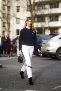 Kako nositi bijele traperice uz crne čizme i gležnjače?