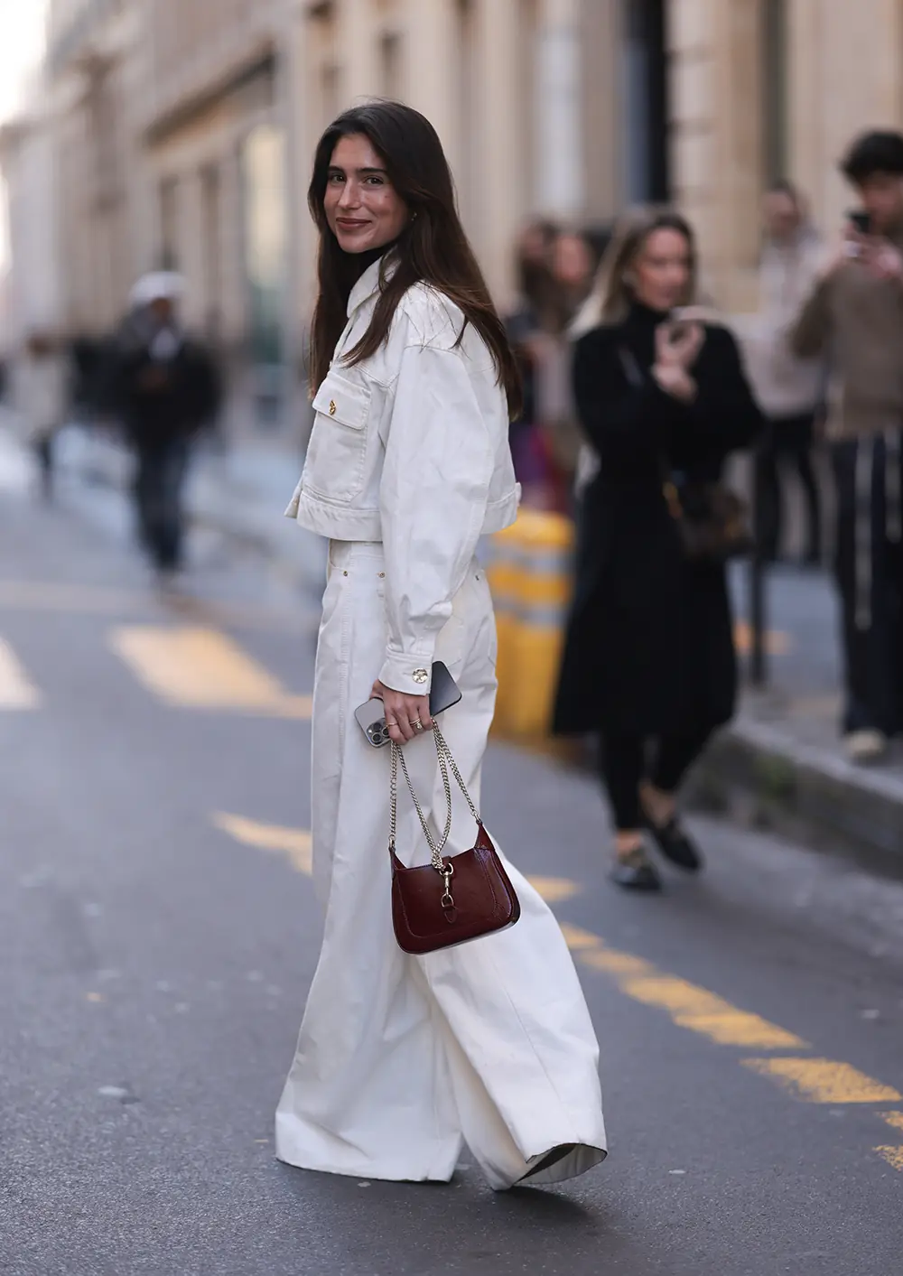 Ako smo nešto naučili od brendova poput Burberryja, Copernija i Hermèsa, to je da će jahačke čizme i dalje biti opsesija sezone jesen/zima 2025. One donose savršenu inspiraciju za drugačije kombiniranje bijelih traperica, čak i skinny modela koje neke žene nevoljko nose. Tajna je u uskom kroju traperica koji omogućuje da čizme visoke do koljena nosite preko nogavica. Dodajte tanki remen, rebrasti pulover i košulju preko: chic i funkcionalno.