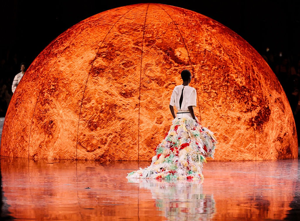 Stakleni svod Grand Palais doprinosio je dramatičnosti te povećavao osjećaj prostranosti i ambijenta “izvan vremena” dok je reflektirajući pod omogućavao igru svjetla i sjene, čime se vizualno povećavao dojam dubine ovog modnog kozmosa. Planeti su lebdjeli negdje između piste i svoda, dok se na tlu odvijala prava modna magija kuće Chanel, pojačana bojama koje je Blazy birao za kolekciju, ali i za planete. Vrhunski promišljene detalje pratilo je pažljivo odabrano osvjetljenje – isticalo je materijale dok su refleksija planeta i sjaj poda naglašavali ambijent “noćnog neba”. Cijeli je prizor postao djelić svemira, pogled u svemir što je svakoj haljini, svakom materijalu dodalo drugačiji kontekst – materijali od šljokica, sjajni i slojeviti u različitim teksturama oživjeli su na drugačiji način u ovom okruženju.