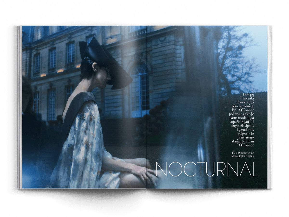 Naslovnicu prosinačkog broja krasi Erin O’Connor, jedno od najpoznatijih lica modne industrije, muza dizajnera kao što su Galliano, Gaultier i McQueen, a koju je Karl Lagerfeld nazvao jednim od najboljih modela na svijetu. Britanska manekenka i ikona modelinga savršeno utjelovljuje mističnost noći u looku broj 30 iz kolekcije za proljeće 2026 dizajnerice Dilare Findikoglu koja je na nedavno održanim Fashion Awards 2025 nagrađena s prestižnom Vanguard Award. Fotografije koje je svojim objektivom zabilježio Douglas Irvine, uz modu Taylora Angina, sve su snimljene noću, otkrivajući noć kao vrijeme kada se konačno možemo osloboditi svojih dnevnih uloga, rituala i očekivanja, te se prepustiti slavlju, mističnosti i najdubljim čežnjama.