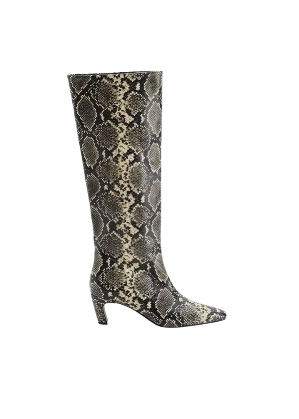 Duga boho traper suknja i visoke čizme sa zmijskim uzorkom