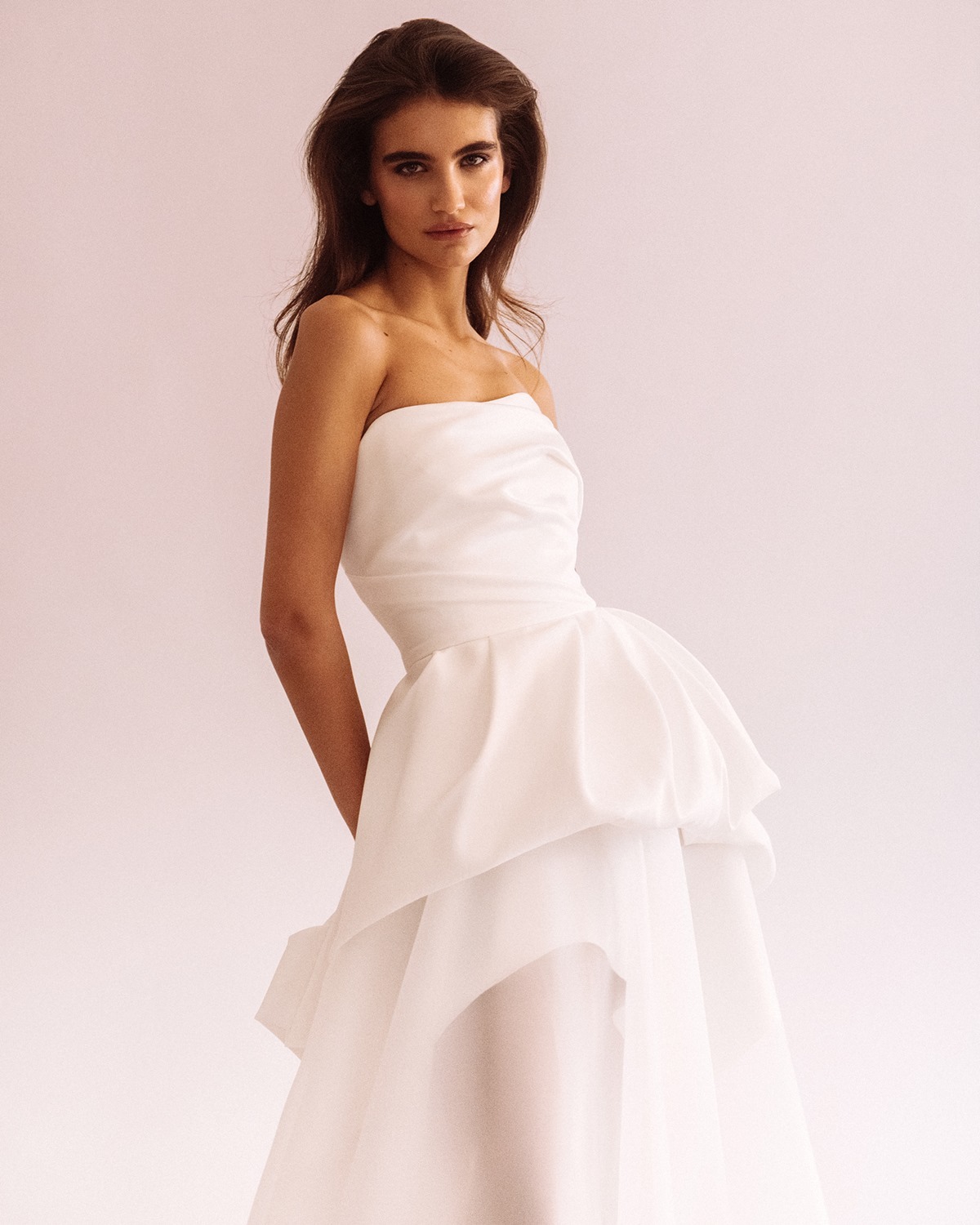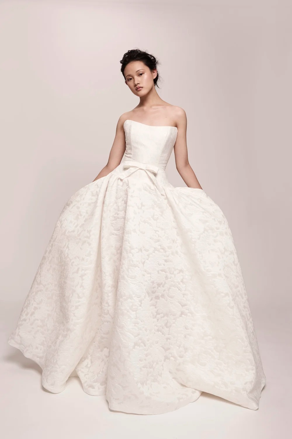 Iako se mogu činiti odviše „slatkastima“, mašne na vjenčanicama ne moraju biti izvedene klasično. Za razliku od prošle godine, kada su bile smještene straga, u 2026. premještaju se na prednji dio haljine – a posebno zanimljive su one vjenčanice koje redefiniraju izgled mašne. Brend eNVy room učinio je upravo to: veliku mašnu postavio je na rame, kreirajući asimetričnu haljinu, dok je Mihano Momosa mašnu integrirao u samu siluetu ponudviši oblik haljine koji nismo baš navikli viđati.