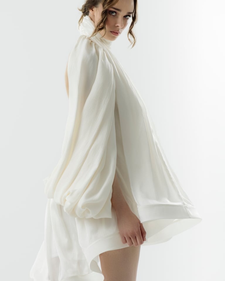 Iako trendovi predviđaju dominaciju raskošnih, voluminoznih balskih haljina, kratke bijele vjenčanice niti u 2026. ne gube na važnosti. Osim što volimo njihovu praktičnost, sviđa nam se i posebna doza buntovništva kojom zrače. Sjajne kratke vjenčanice pronašli smo kod regionalnih brendova poput Ines Atelier i Lokomotive, ali i kod Christophera Esbera čija je kreacija prekrivena neočekivanim slojem čipke. Win-win!
