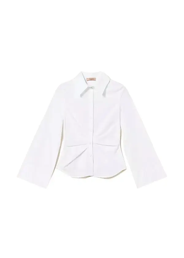 Danas je moj uredski look mali miks udobnosti i cool faktora: široke traperice u tamnoplavom denimu s bočnim džepom (utility, ali ne pretjerano), savršene su za slobodno kretanje, a bijela majica dugih rukava ostaje idealna baza za građenje outfita.