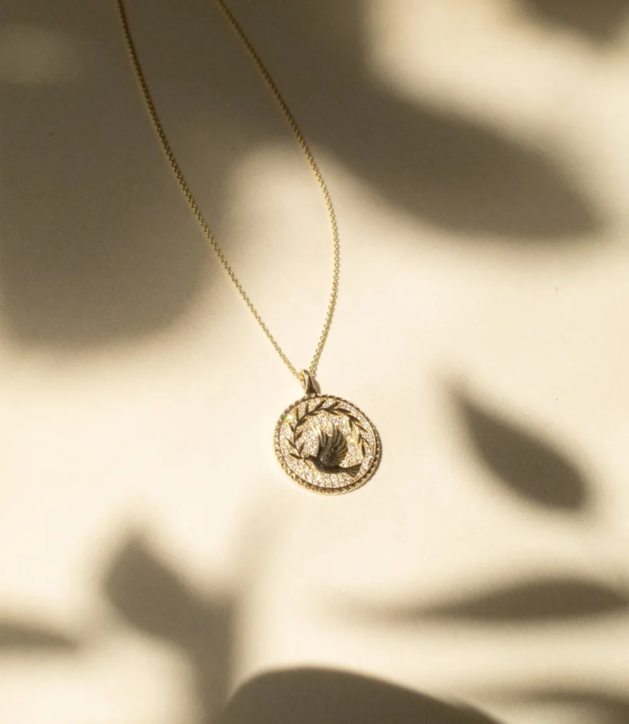 Najnovija kolekcija sadrži motive iz karijere dr Goodall, uključujući golubicu i maslinovu granu, kao simbol njene posvećenosti miru. Courtesy of Brilliant Earth