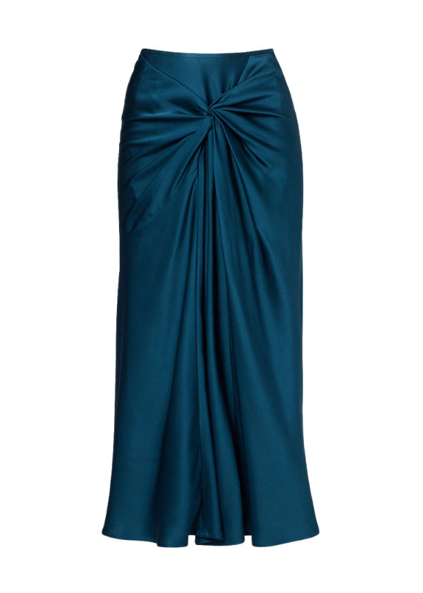 Iako se na prvi pogled ne bi očekivalo njihovo spajanje, petrolej plava i grimizno crvena savršeno se nadopunjuju. Bilo da se nose u suptilnim detaljima ili kao snažan statement kroz dominantne komade, ovaj komplementarni duo značajno podiže modni faktor siluete. Kako bi predstavila ovu kombinaciju, kuća Alaïa odlučila se za upečatljivu torbu, uz suknju i hulahopke u petrolej plavoj boji.