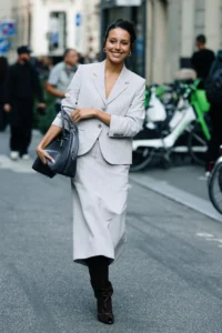 Ponekad je sve u jednostavnosti. Verzija tradicionalnog krojenja za 2025. dolazi predimenzionirana i lagano opuštena, bez traga uskim suknjama ili tankim štiklama. Dodajte torbu u kontrastnoj boji da pokažete kako zimska paleta ne mora biti isključivo monokromatska do proljeća.