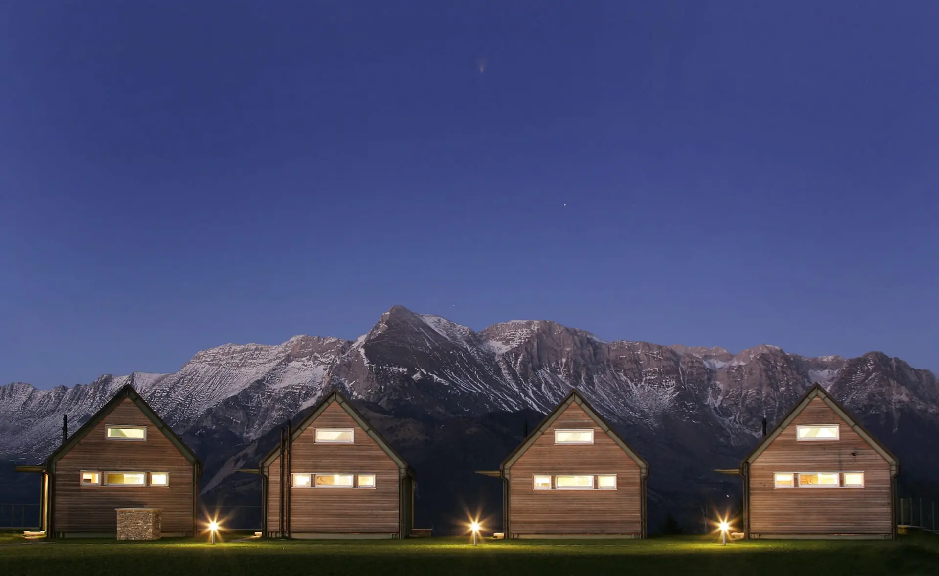 Visoko iznad doline smaragdne Soče nalaze se Nebesa Chalets, mjesto na kojem svijet na trenutak zastane. Ukopane u padinu Kuka, četiri moderne kućice s terasama lebde između neba i zemlje. Ovdje ste dio prirode, a ne njen promatrač. Dizajn arhitekta Roka Klanjščka, pod mentorstvom majstora Janeza Hacina, odaje počast harmoniji prirode i lokalnoj tradiciji planinarstva. Veliki stakleni zidovi brišu granicu između interijera i zadivljujuće prirode, stvarajući osjećaj da dišete zajedno s planinama. Ovdje ćete pronaći sve što vam treba – toplu saunu s pogledom na beskonačnost planina, kamin kraj kojeg ćete zaboraviti na vrijeme i osjećaj da ste daleko od svijeta, a istovremeno točno tamo gdje trebate biti. Suvremena interpretacija pastirskog sela spaja se s netaknutom prirodom, kao da je oduvijek tamo bila. Dolina Soče nudi nebrojene aktivnosti, od mnogih pješačkih staza do kajaka i SUP-a, na jednoj od najljepših rijeka u Sloveniji.