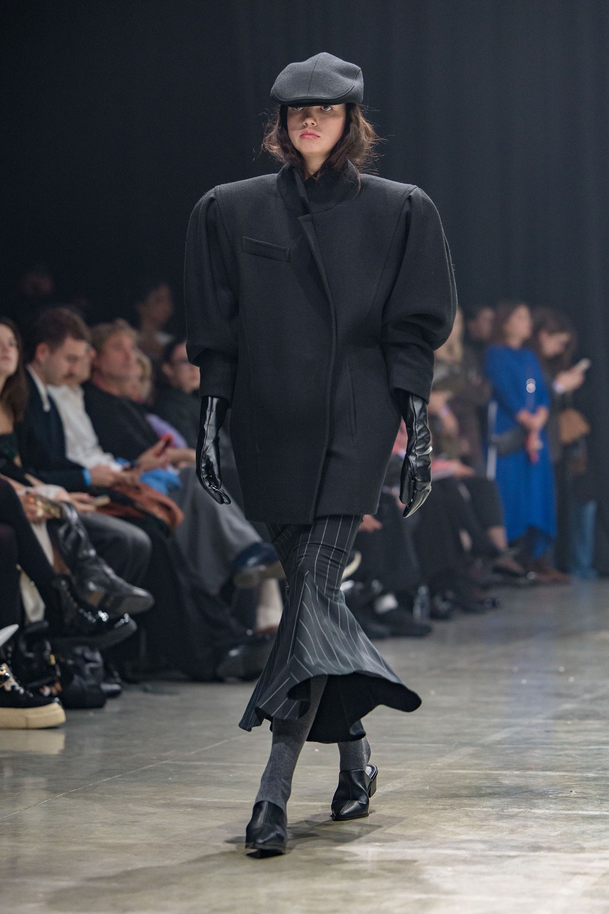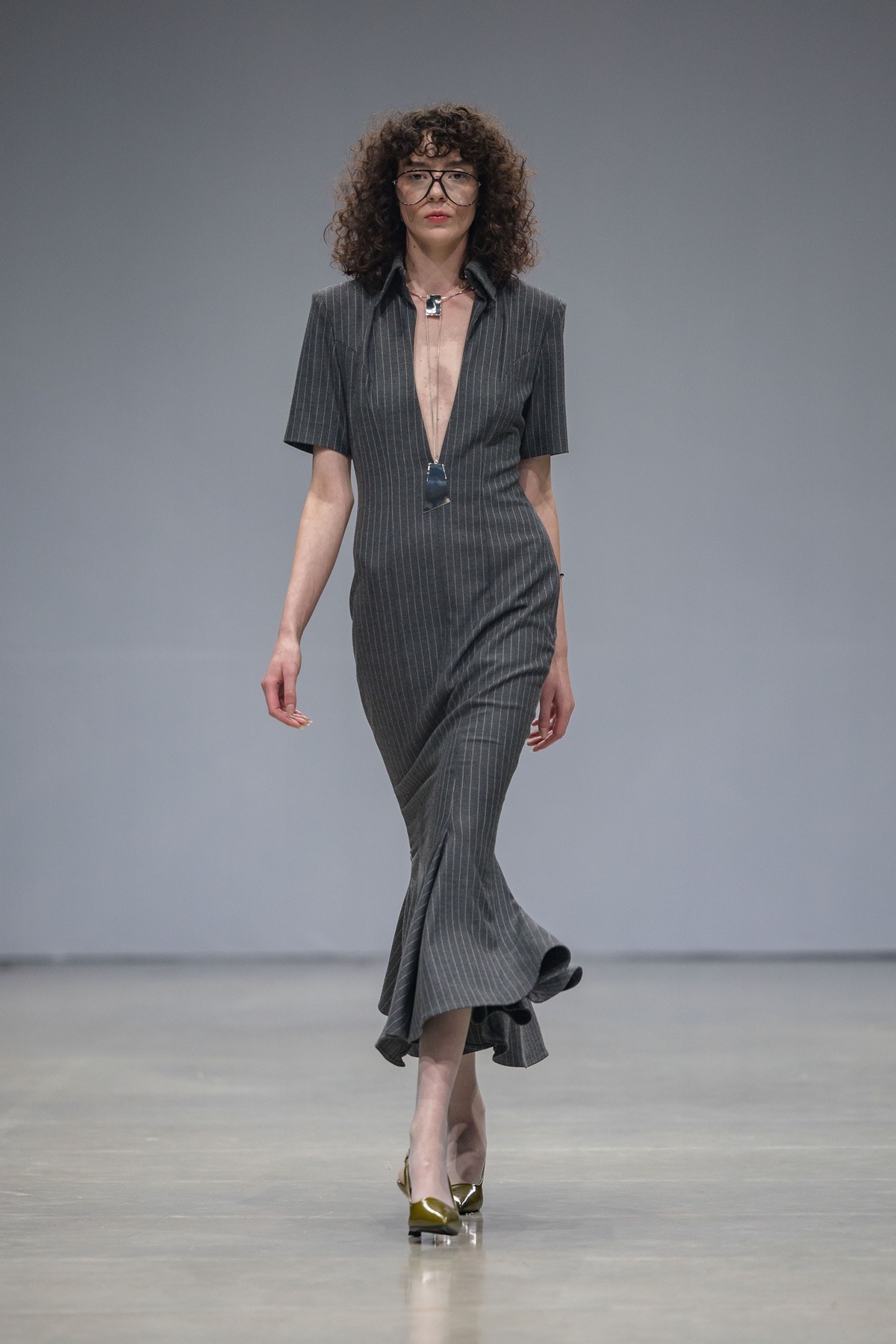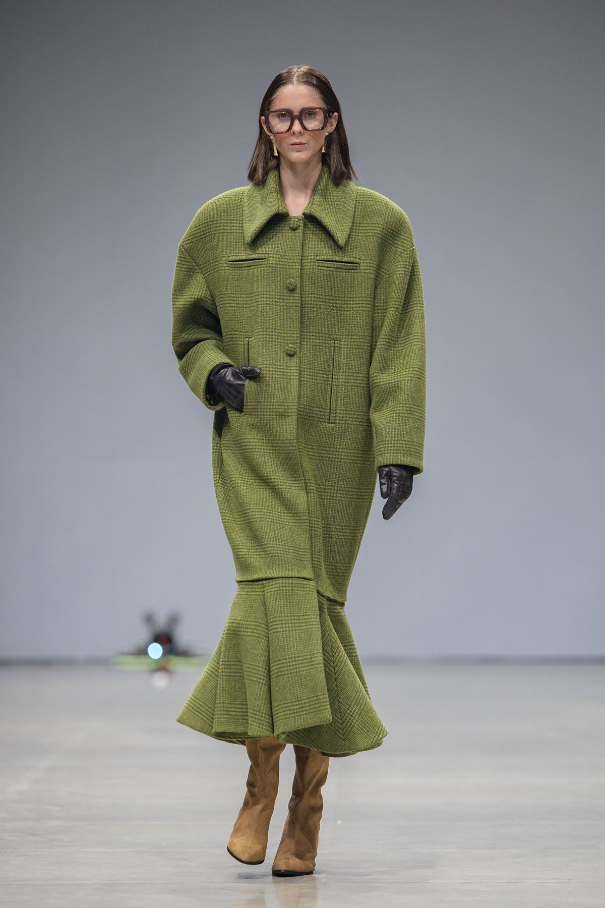 Savršeno krojeni zeleni kaput koji u, pomalo neočekivanoj maniri, završava volanom komad je koji sam odmah primijetila i koji u mom pamćenju od tada živi rent-free. Gledajući ga kako se pomiče pistom u glavi sam odmah imala sve svoje poznanice za koje znam da bi ga obožavale. No, taj kaput je za mene u publici bio mnogo više od kaputa – bio je signal da gledam brend koji itekako dobro zna što je tailoring. I nisam se prevarila, Caravasili je rezultat duge obiteljske tradicije u koji je utkano znanje i strast triju generacija. Također, ono što ga čini iznimnim je i posvećenost održivom poslovanju – svaki se komad izrađuje po narudžbi, bez zaliha i bez otpada.