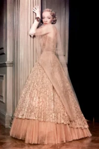 Filmovi Alfreda Hitchcocka ubrajaju se među najstiliziranije u povijesti: sjetite se samo mint zelene odijelne kombinacije Tippi Hedren u The Birds, crne haljine Kim Novak u Vertigo i haljina Grace Kelly u To Catch a Thief. Dok je legendarna kostimografkinja i osmostruka oskarovka Edith Head odijevala mnoge Hitchcockove junakinje, noir film Stage Fright iz 1950., s Marlene Dietrich u glavnoj ulozi, označio je prekretnicu. “Bez Diora, nema Dietrich,” rekla je njemačka glumica producentima pa je Majstor napetosti angažirao Christiana Diora da kreira njezine kostime. Nastali su strukirani kostimi, til haljine i mnoštvo perja, savršeno za ženu koja glumi ekstravagantnu pjevačicu s londonskog West Enda optuženu za strašan zločin.