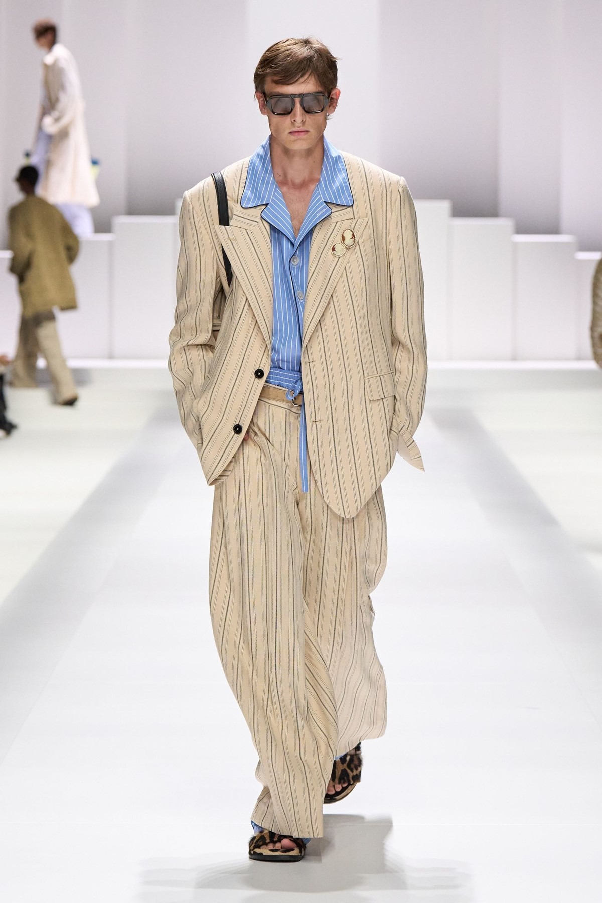 Prugasta odijela opuštenih krojeva jašu na valu stila strogo ležerno. Iako je i dalje riječ o odijelu, simbolu formalnog i ozbiljnog muškog odijevanja, ovog proljeća ono dolazi s nonšalantnom, rasterećenom notom. Ukrašena prugama, u interpretaciji modnih kuća poput Dolce & Gabbane ili Louis Vuittona, ova odijela prizivaju estetiku pidžama – redizajniranih tako da budu prikladne za nošenje izvan doma, a da pritom zadrže ono zbog čega ih najviše volimo: osjećaj udobnosti.