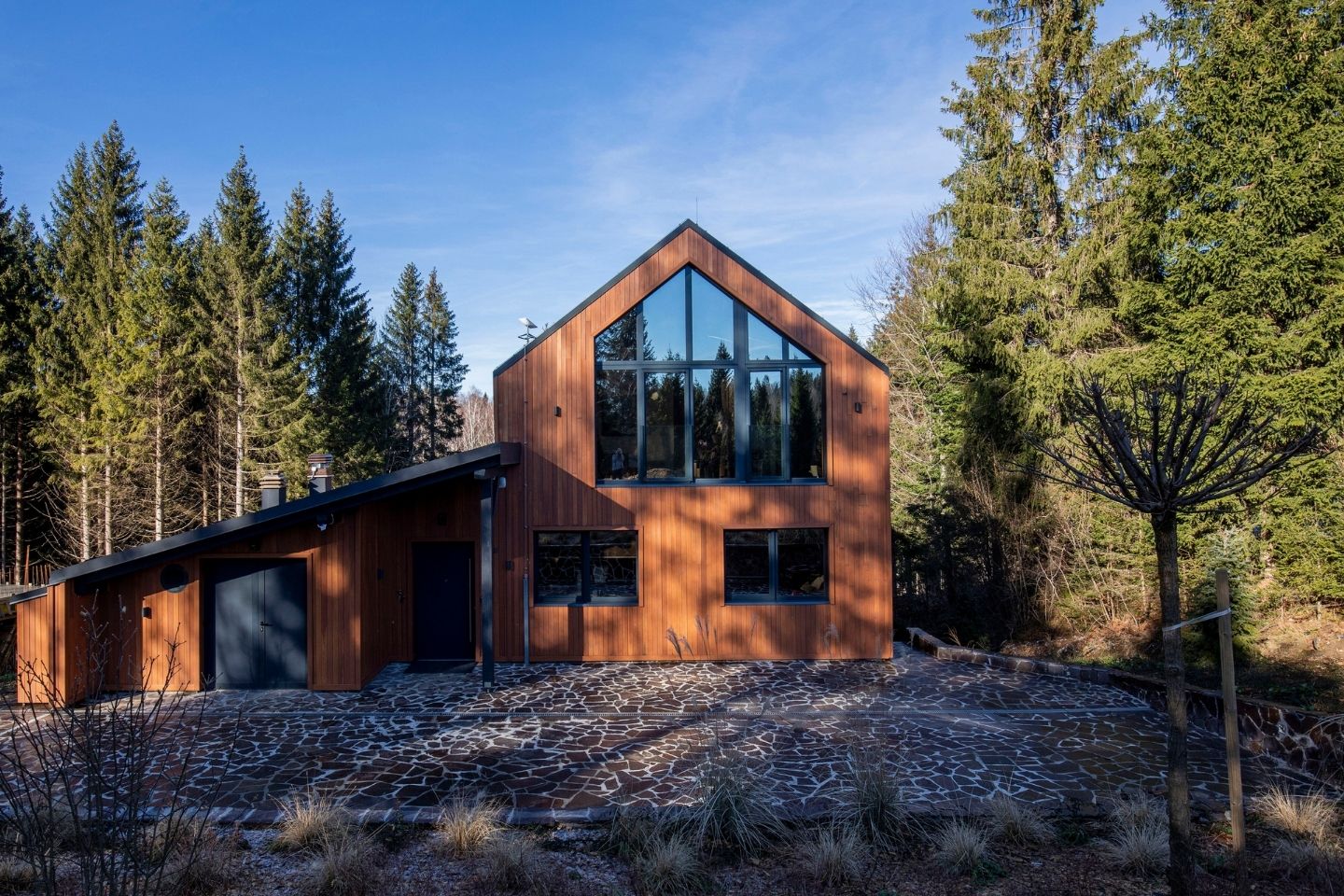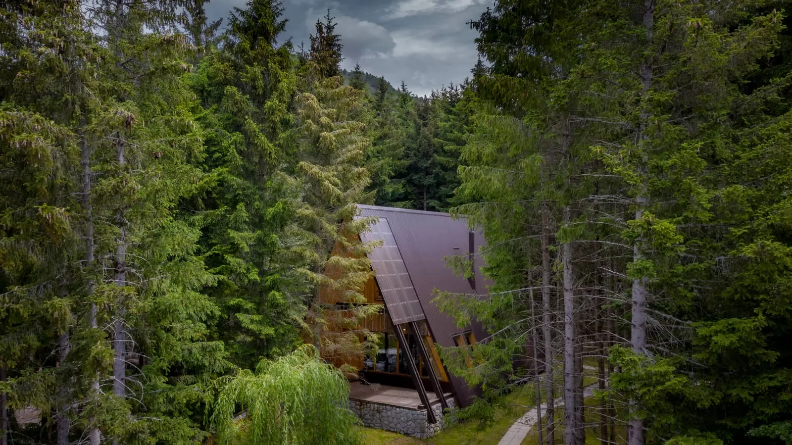 Forest House Stella, planinska A-frame kuća okružena drvećem