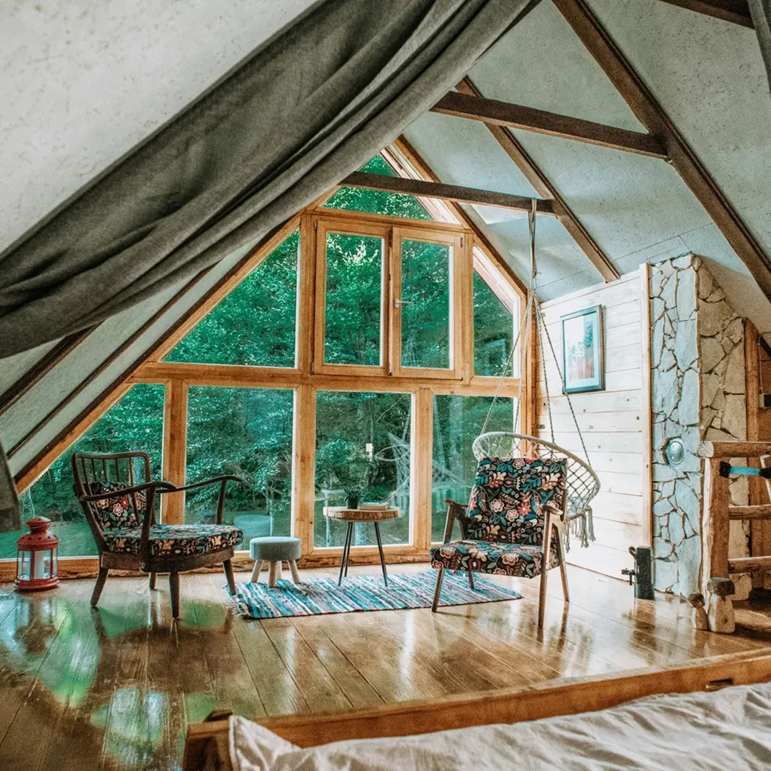 Koliba Šume pjevaju (a tako ćete se i osjećati ovdje), u Mrkoplju je off-grid bijeg za one koji žele tišinu, prirodu i povratak osnovama. Bez gradske buke, s 12 V strujom i vodom iz cisterne, ova koliba nudi intiman luksuz posvećen jednostavnosti. Terasa, vrt i šuma koja okružuje kuću stvaraju savršenu kulisu za digitalni detox. Ovdje se dolazi da biste nestali, barem na nekoliko dana.
