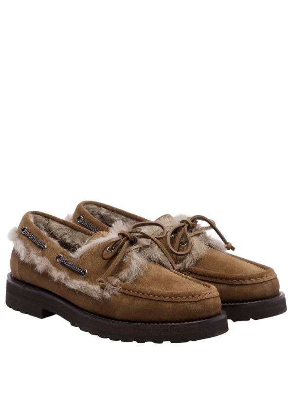 Paleta boja krznenih nautičkih mokasina ostaje vjerna zemljanim tonovima, od “zagorjele” kože do tamne čokolade i camel nijansi.