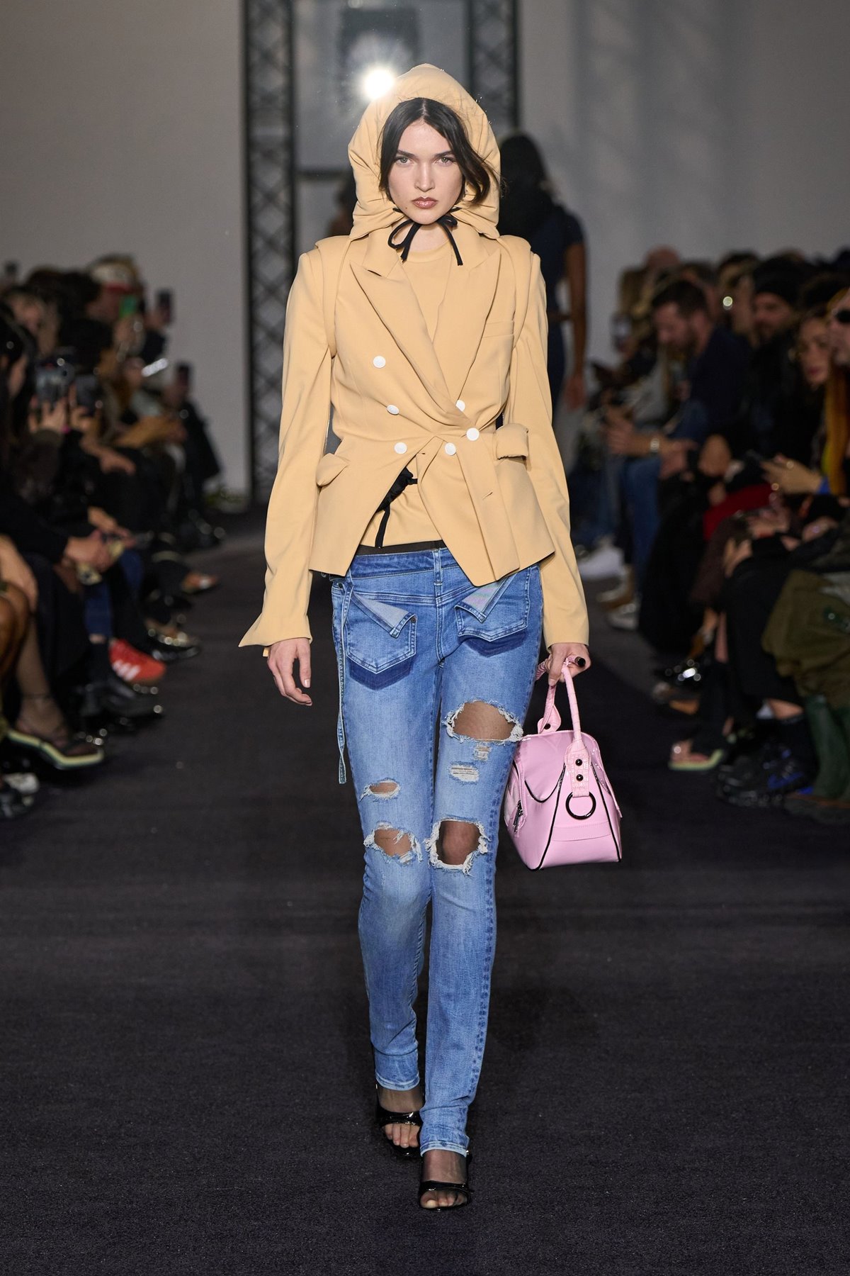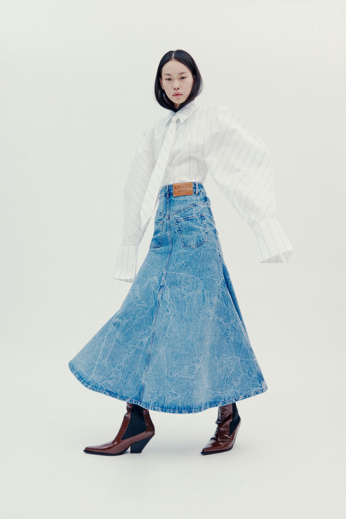 Nošenje odjeće naopačke ili pak izvrnute tako da otkriva unutrašnje šavove nije novost. Ovaj dizajnerski manevar posebno su voljeli dizajneri koji su dekonstrukciju učinili dijelom svog prepoznatljivog rukopisa, poput Martina Margielae, Ann Demeulemeester ili Yohjija Yamamotoa. No posljednjih je sezona odjeća nošena naopako dobila novi touch navodeći nas da se zapitamo zašto svoje kapute uvijek nosimo na isti način i hlače kopčamo sprijeda. Zomer, brend u usponu iza kojeg stoje Danial Aitouganov i Imruh Asha, čitavu su kolekciju za jesen 2025 bazirali upravo na tom koncpetu, a ideji odjeće nošene “naopačke” pridružili su se i brendovi A.W.A.K.E. MODE i Ottolinger smjestivši stražnju stranu jeansa na prednjicu.