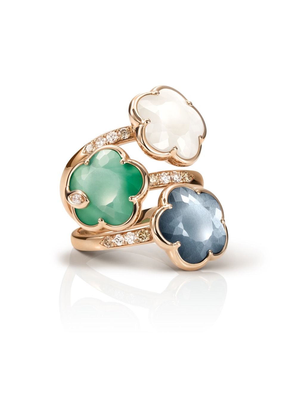 Kad je riječ o mojim osobnim preferencijama posebno me se dojmila njihova kolekcija Figlia dei Fiori (Kći cvijeta) koja stavlja u prvi plan jedan od najprepoznatljivijih motiva – cvijet s pet latica koji predstavlja simbol gracioznosti, vitalnosti i ženstvenosti. Svaki komad nakita, bilo prsten, narukvica ili ogrlica, ručno je izrađen u talijanskim ateljeima u Valenzi, s pažljivo odabranim dragim kamenjem poput rozenkvarca, tirkiza, crvenog granata ili zelenog žada. Prvo što ćete pomisliti jest da osvajaju ljepotom. Ipak, ja vjerujem da bude energiju. Ovo je tip nakita u kojem svaka boja i oblik imaju svoju priču i namjeru koja nije pretenciozna ni nametljiva.