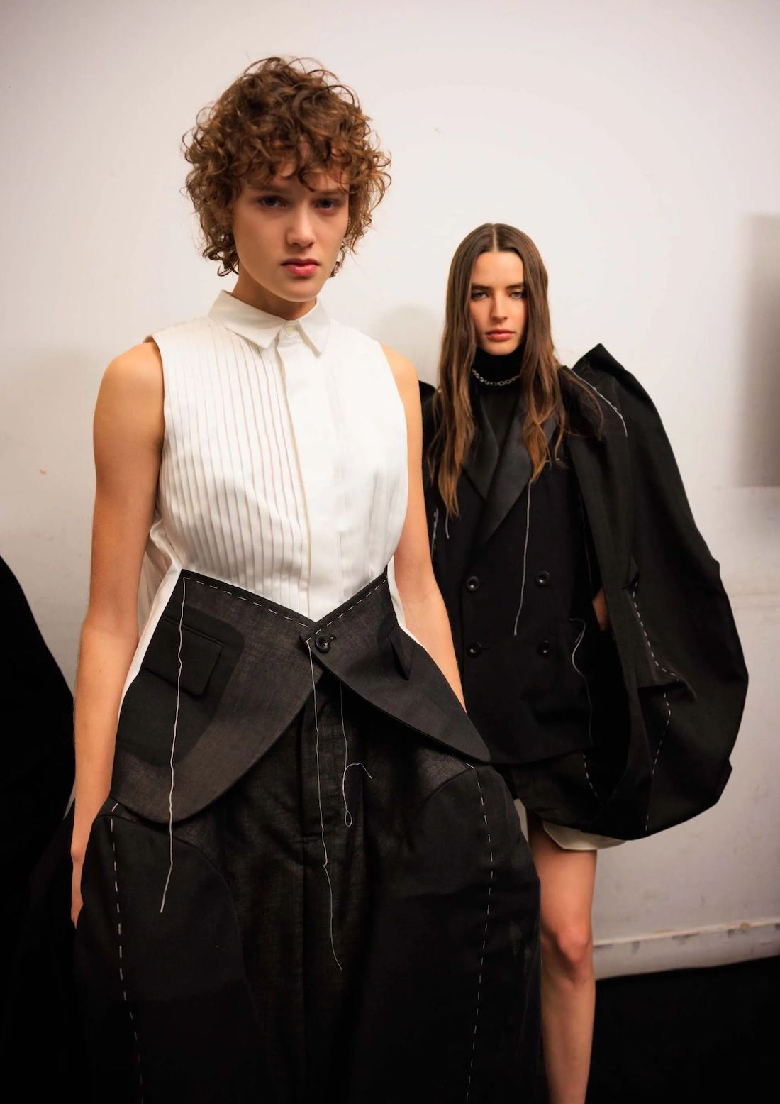 Ako se vratite u Vogue Runway na jesen 1995. (jednu od prvih Miu Miu revija), vidjet ćete prve grudnjake u stilu pedesetih i vidljive gaćice do koljena koje se danas ponovno pojavljuju, objasnila je. Ako je Miuccia označila povratak ovog stila, postoji razlog – i mogli smo vidjeti da je raznolika postava modela nosila klasične frizure u tri dužine: do visine uha, iznad ramena s krajevima uvijenim prema unutra ili s crepeom unazad.