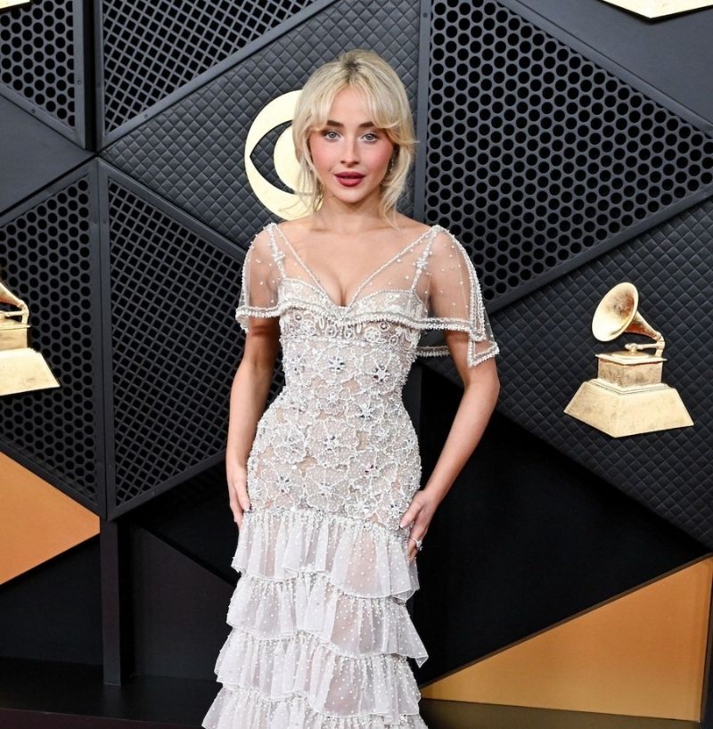 Pjevačica, koja već ima dva osvojena Grammyja, ove je večeri bila nominirana za još šest nagrada zahvaljujući svom sedmom albumu Man’s Best Friend. Na crvenom tepihu Carpenter je odabrala custom bijelu haljinu kuće Valentino, s potpisom Alessandra Michelea. Haljina, na kojoj se radilo puna tri mjeseca, nastajala je kroz četiri probe.