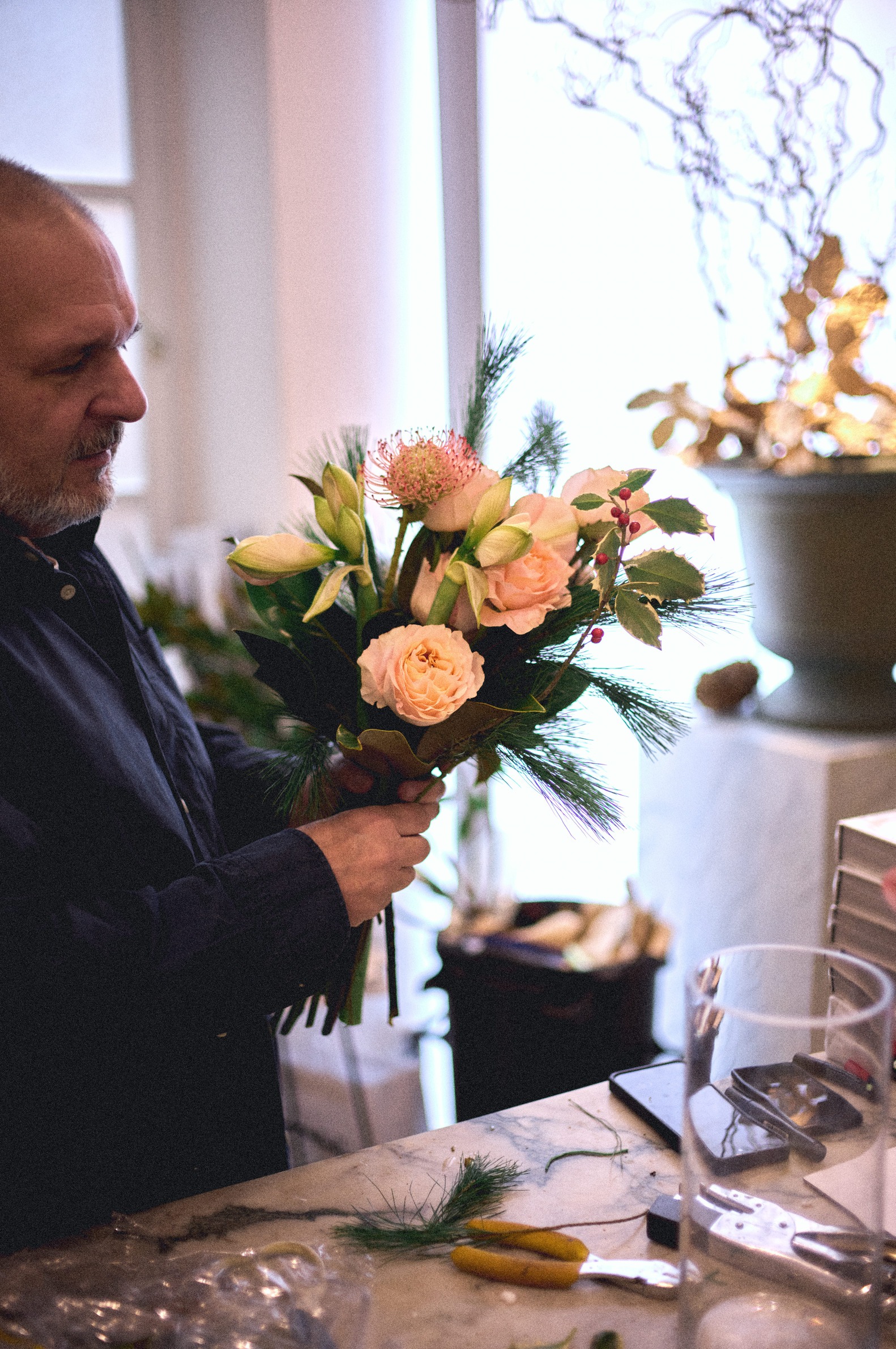 U svijetu koji idealizira perfekciju, Saša Šekoranja bira krhkost, nesputanost i nedovršenost. Je li to njegova filozofija? Danas sam shvatio da je perfekcija precijenjena. Važno je biti uvjerljiv. Kad gledate Rembrandtov Sat anatomije, neka su skraćenja pogrešna, ali on je beskrajno uvjerljiv. Najvažnija je autentičnost. Ja znam da radim ovako i sve drukčije bilo bi pogrešno. To sam shvatio i tako živim. Njegov rad prepoznatljivo odiše razigranošću, i to ne lakom, površnom, nego onom koja dolazi iz dubine i pažnje, a u toj igri cvijeće često izgleda kao da vodi svoj mali, unutarnji dijalog. Kad radi, osjeća li da aranžira prirodu ili sluša što ona diktira? Sve sam naučio iz prirode, proporciju, boju, kontraste, strukture. Kad radim s cvijećem, ono me vodi. Cvijeće je samo po sebi dekorativno i često ga tako koristim, ali ponekad osjetim potrebu da negiram tu dekorativnost i stvaram umjetničke instalacije. Cvijeće može imati istu snagu kao riječ ili slika, ali ima i jednu dodatnu dimenziju, prolaznost. Ona je dominantna i meni posebno privlačna. Ima tu još nečega, one nepodnošljive lakoće postojanja za kojom toliko čeznemo.