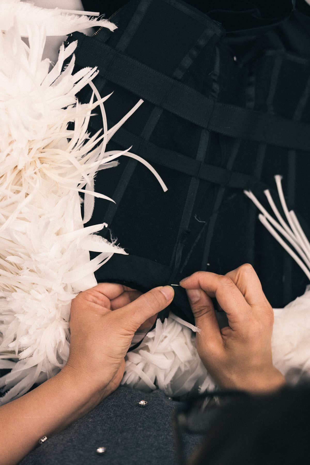 Haljina koja je privukla pozornost svih prisutnih poprilično je posebna. Sastoji se od dvije stotine ručno ušivenih elemenata od perja, organze i svilenog šifona u bijeloj boji koji su krasili glumičina ramena. Njezina izrada u Chanelovom ateljeu, od konstrukcije do detaljnog vezenja, zahtijevala je ukupno 323 sata rada. Elegantnu kreaciju u stilu zlatne ere Hollywooda Gomez je za crveni tepih Zlatnih globusa zaokružila i luksuznim Chanel nakitom, od velikih dijamantima ukrašenih naušnica do nekoliko prstenova, kao i crnim slingback cipelama koje su bile vidljive tek kada je podignula toaletu kako bi lakše koračala crvenim tepihom. Look je zaokružila profinjeno uvijenim bobom, tamnim ružem na usnama i nekonvencionalnim crnim lakom na noktima, a Blanco je svoj outfit pažljivo uskladio sa suprugom, odjevši crno odijelo s dijamantnim brošem i mokasinama u istom stilu. Iako je i prije nosila Chanel na modnim događanjima, bio je to prvi put da je Selena odabrala kreaciju francuske modne kuće za crveni tepih ovako važne dodjele nagrada kao što su Zlatni globusi.