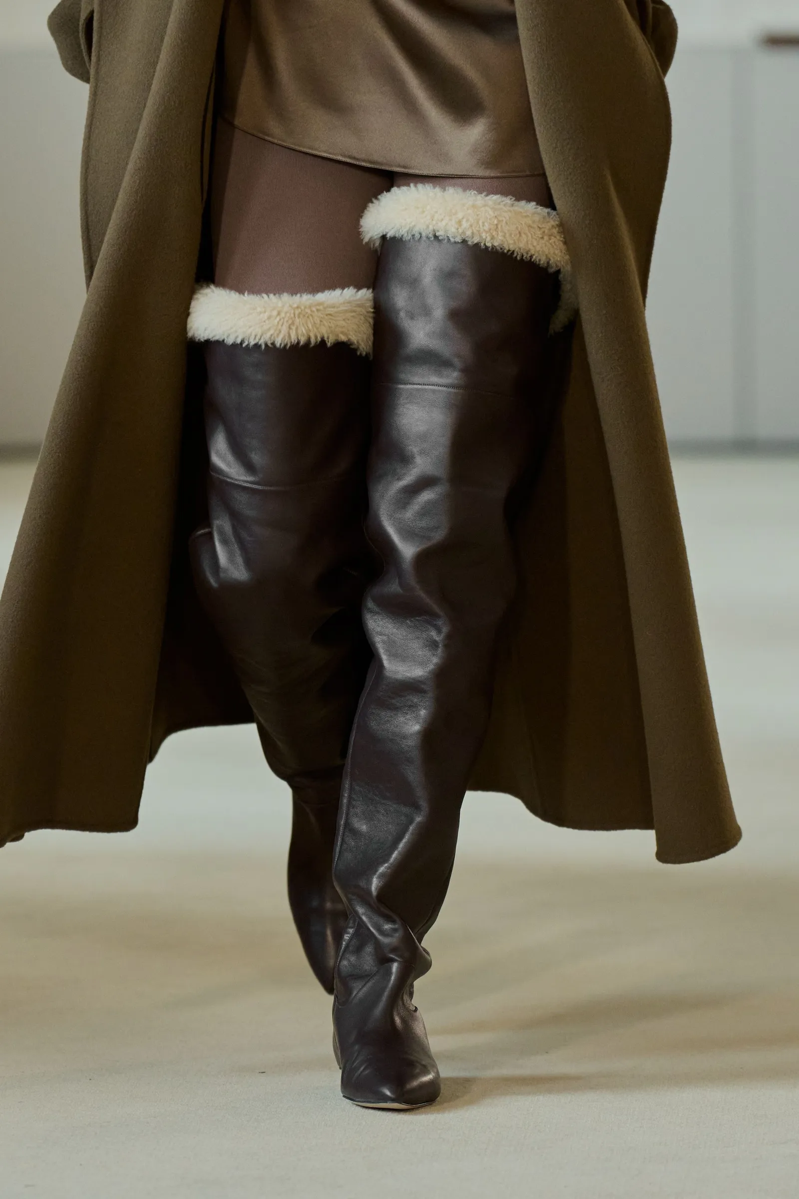 Na kraju, Altuzarra nadmašuje očekivanja predstavljajući duge čizme u čokoladnoj nijansi s diskretnom petom i vunenom podstavom: pobjednički izbor ako planirate blagdanske proslave u hladnijem okruženju nego inače. Riječ je o raskošnom paru koji transformira kombinacije s tajicama, debelim hulahopkama u boji pa čak i mini haljinom, potvrđujući da visoka potpetica nije nužna kako biste izgledali elegantno i glamurozno. Sve je stvar pronalaska onog savršenog para iz snova koji će rijetki imati.