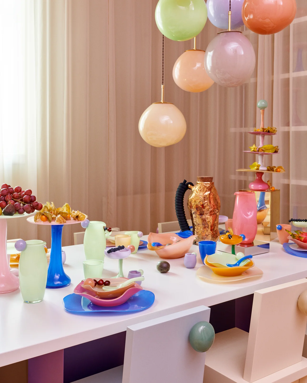 Danska dizajnerica i osnivačica Helle Mardahl Studio, predstavila je na sajmu svoju najnoviju kolekciju ručnog, mouth‑blown stakla koja slavi žive boje, organske oblike i taktilnu senzualnost materijala. Njeni radovi uključuju šarene čaše, vaze, dekorativne objekte i rasvjetna tijela u pastel tonovima i “sorbet” paleti boja, koje djeluju poput malih umjetničkih skulptura i evociraju osjećaj igre, radosti i emocionalne topline prostora.