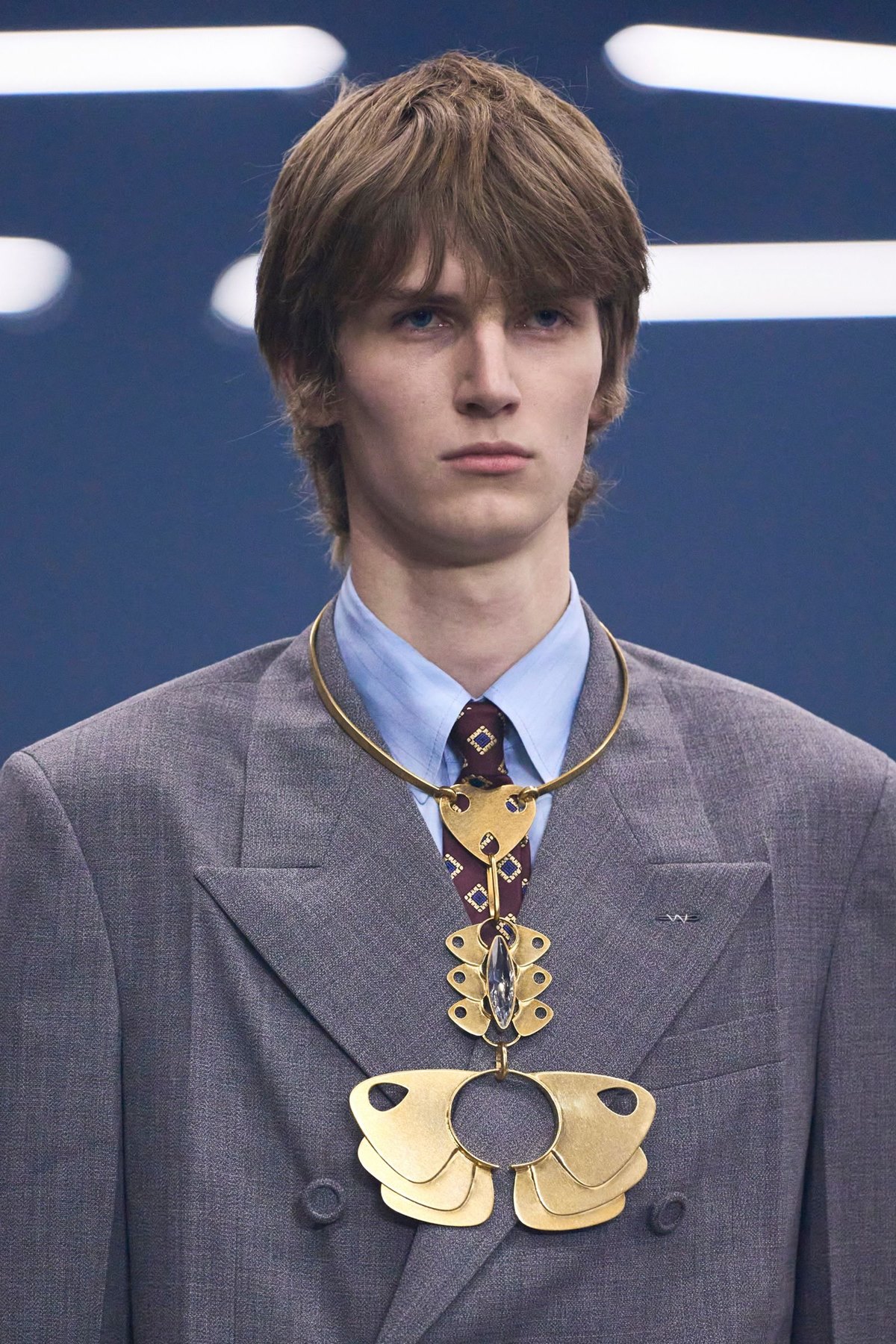 Nabijeni seksepil debitantske kolekcije Darija Vitalea za Versace uključivao je slojeve narukvica i ogrlica u nizu, sugerirajući razigran, neopterećen pristup modnim dodacima, onaj koji se ne obazire na pravila i savršeno se uklapa u način na koji Vitaleova generacija doživljava modu: bez pretencioznosti i s puno samopouzdanja.