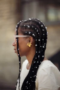 Među trendovima posvećenima dodacima za kosu za blagdane 2025., jedan od najzanimljivijih svakako je povratak kristala u središte pažnje. U obliku bisera i štrasa, savršeni su za dodavanje trodimenzionalnog efekta klasičnom konjskom repu ili punđi.