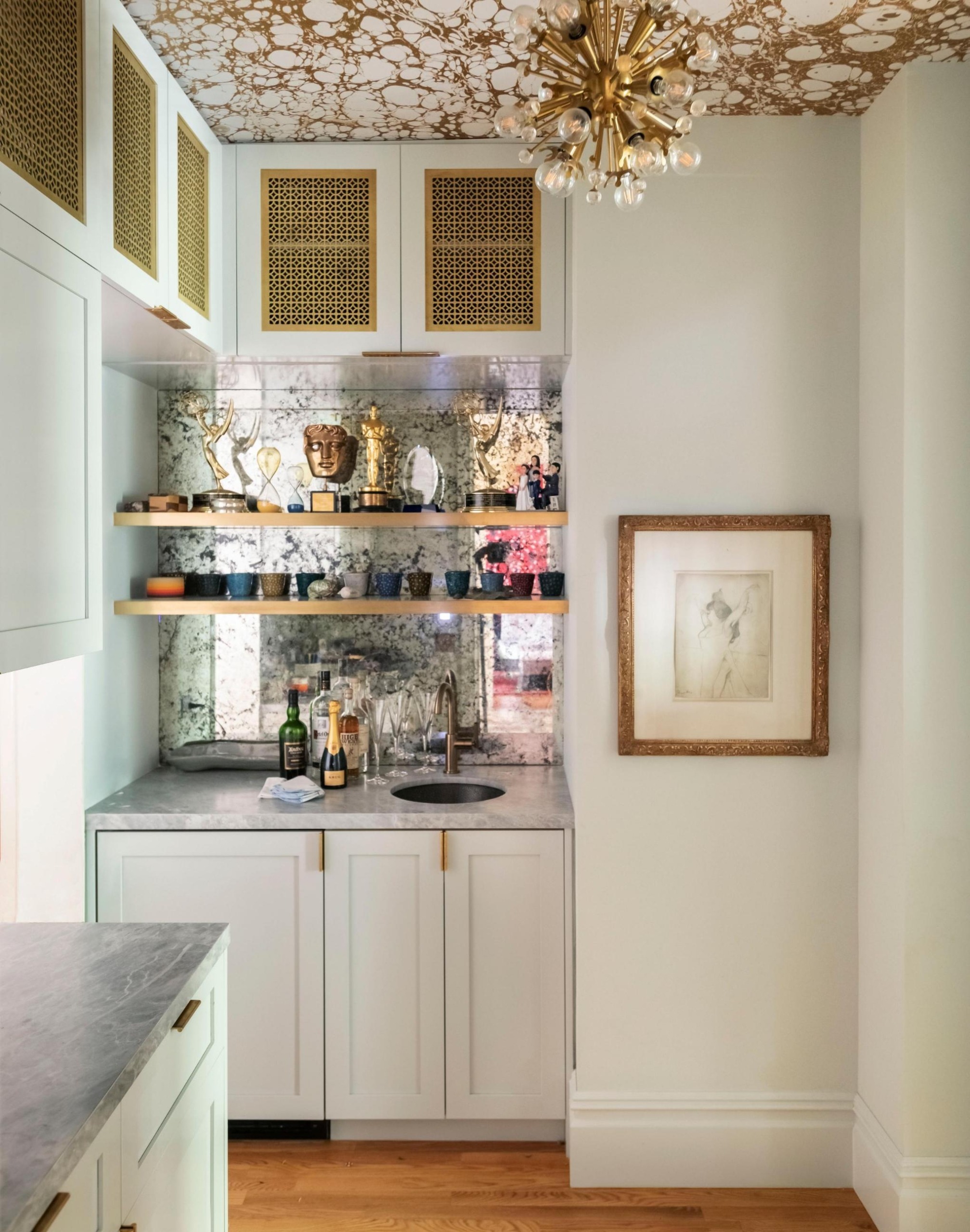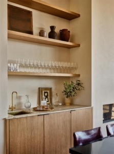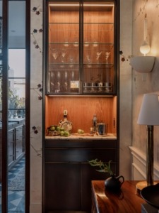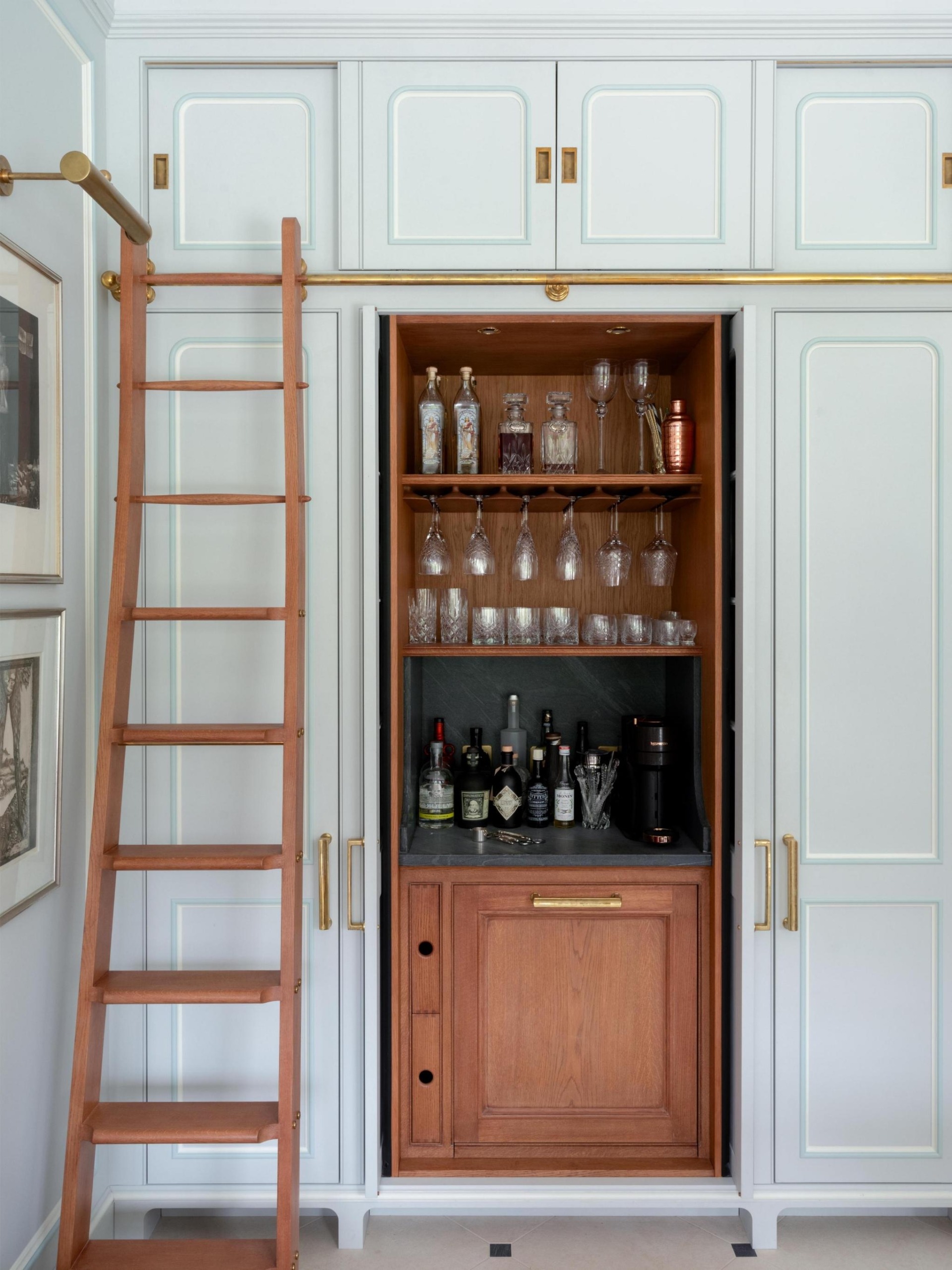 U sklopu povijesnog imanja iz 18. stoljeća, britanski studio Artichoke je dizajnirao i izradio bar ugrađen u ormare. Inspiracija im je bila La Belle Époque, razdoblje kulture i luksuza, a poseban uzor bio je pariški Ritz. Bar je ugrađen u ormare i savršeno se uklapa u simetričan prostor obložen panelima, oslikan nježnim tonovima plave i sive. Unutrašnjost od hrastovine u kontrastu je s kuhinjskim otokom, dok staklena vrata omogućuju da bar nestane ili zasja prema potrebi, kažu dizajneri.