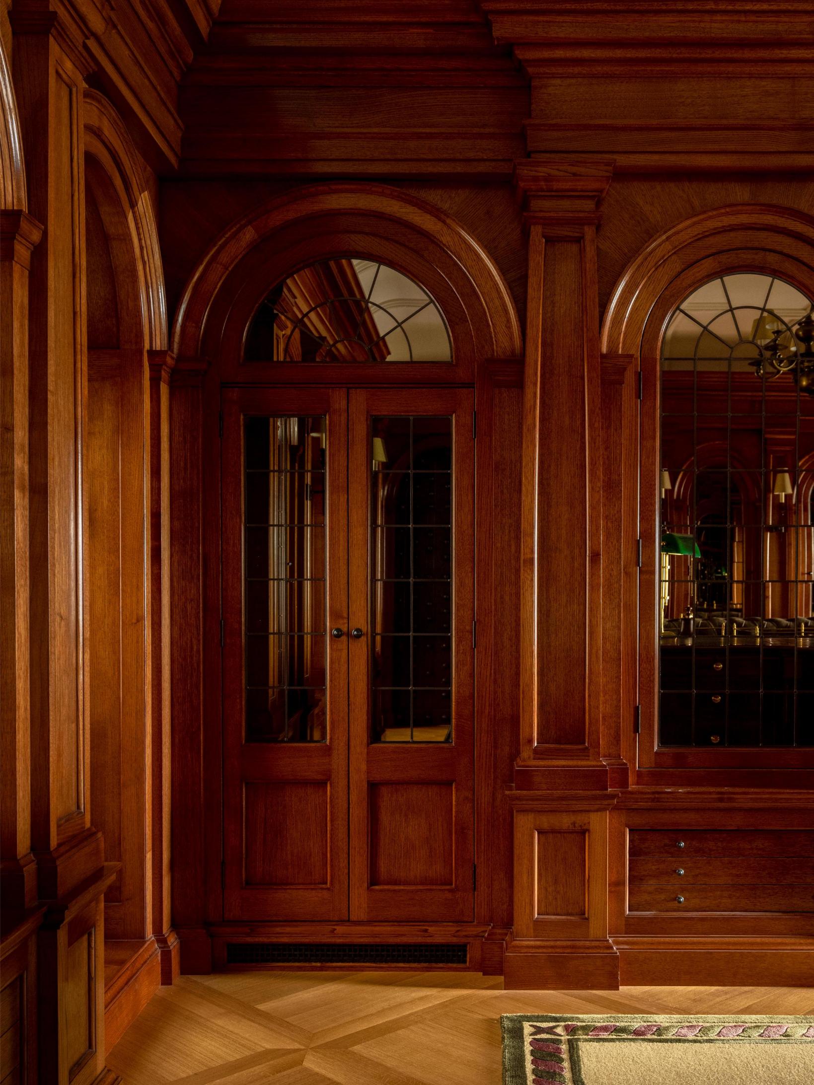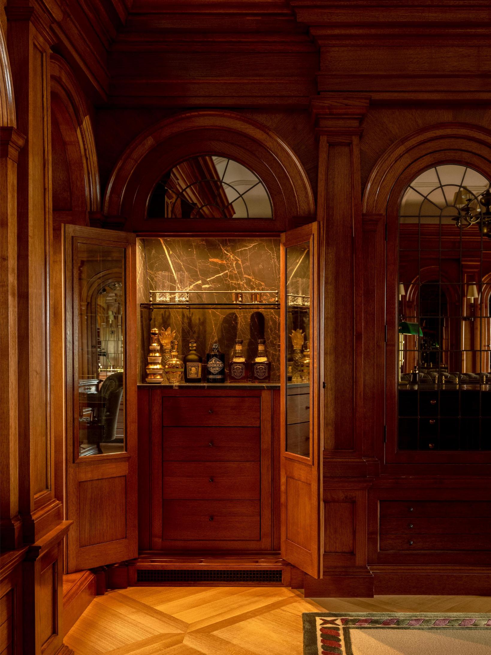 Primjerak kućnog bara može se skrivati u radnoj sobi. Glavna radna soba ovog imanja zamišljena je kao središnje mjesto za posao i druženje. Inspirirana je 18. stoljećem i kabinama admirala Nelsona, s raskošnim drvenim panelima od kestena i skrivenim barom iza dvosmjernog ogledala koje se osvjetljava dodirom gumba na radnom stolu, govore dizajneri iz studija Artichoke koji su ovaj projekt realizirali u Švicarskoj.