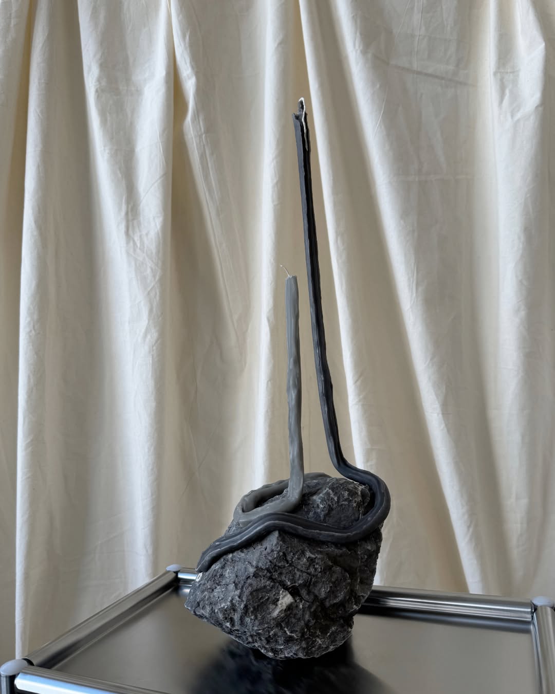 „Ideja se rodila prije tri godine“, kaže mi Ejla, „nakon neuspjelih pokušaja meditacije i upoznavanja s trataka praksom – promatranjem plamena kao metode koncentracije. Oduvijek sam osjećala da vrijeme prebrzo prolazi i da ga ne mogu sustići; sjediti u tišini činilo mi se nemogućim. No, pritom sam počela razmišljati o svijeći: kako mjeri vrijeme, kako ostaje ravna dok vrijeme nije, i koliko mi je teško dopustiti si pauzu.“ Na Ejlina su razmišljanja snažno utjecali Ivan Illich i Byung-Chul Han svojim idejama o suverenom upravljanju slobodnim vremenom. „Prijašnja praksa linoreza i slikanja pomagala mi je „iskoračiti“ iz vremena, a tada sam shvatila da i meditativna praksa mora biti tjelesna, vezana uz ruke i materijal. Svijeće su tako postale moj medij i alat za vizualizaciju prolaznosti i tragova koje vrijeme ostavlja“, rekla mi je Ejla o svom poetičnom pristupu.