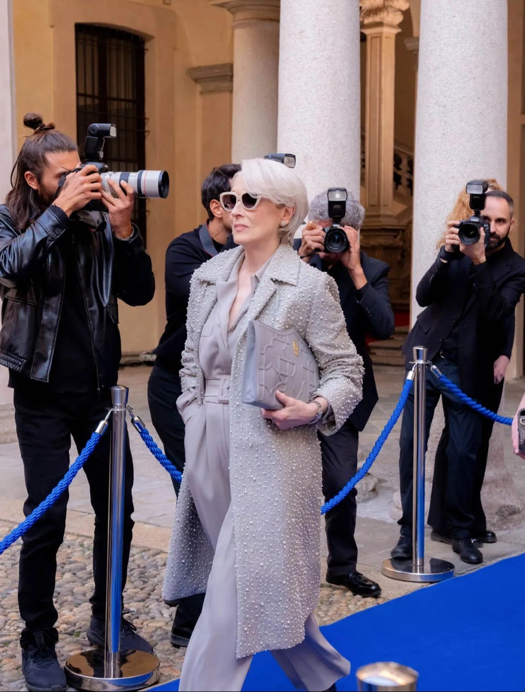 Na snimanju filma Vrag nosi Pradu 2, Anne Hathaway je mislila da joj ide od ruke ostati hladnokrvna. I to unatoč dvadesetogodišnjem razmaku tijekom kojeg je film toliko duboko ušao u pop kulturu da je dovoljno spomenuti frazu od tri riječi („Florals, for spring…“) da ljude odmah vrati u Runway, kao i unatoč stotinama, ako ne i tisućama fanova s pametnim telefonima i paparazza s telefoto objektivima koji su se okupili na Šestoj aveniji kako bi promatrali snimanje scena.